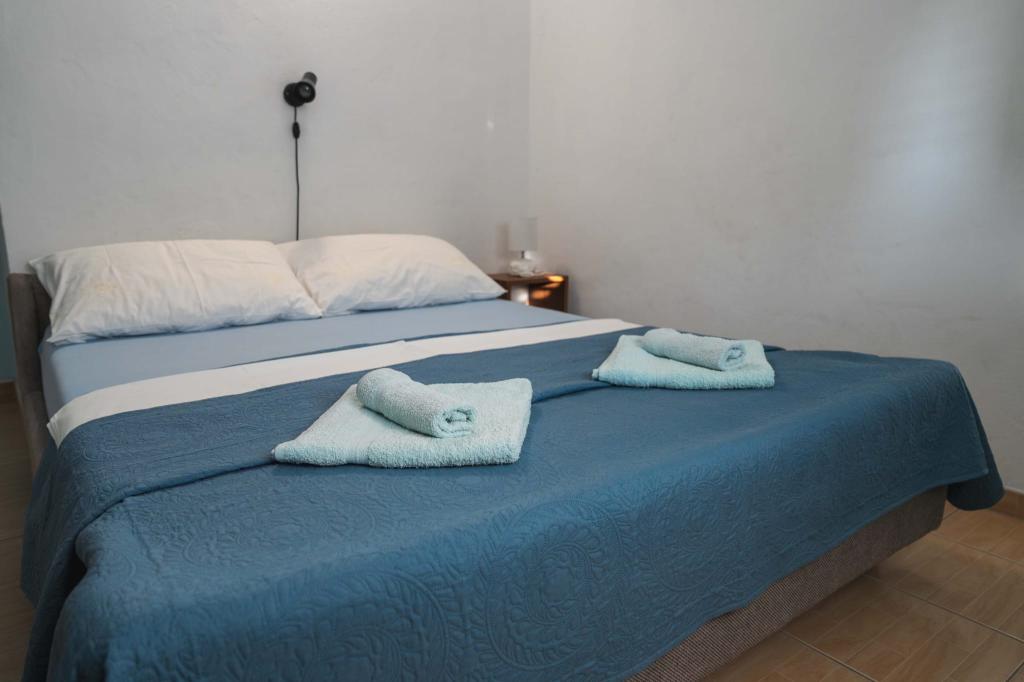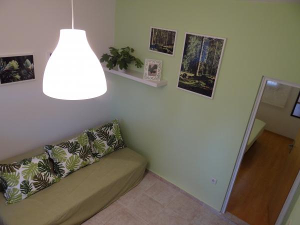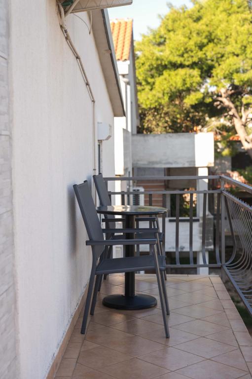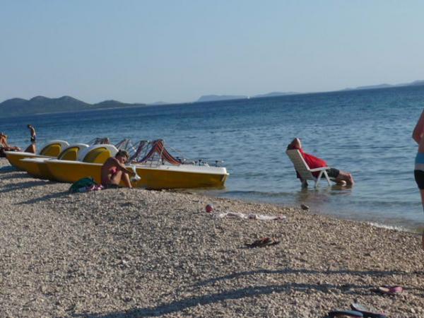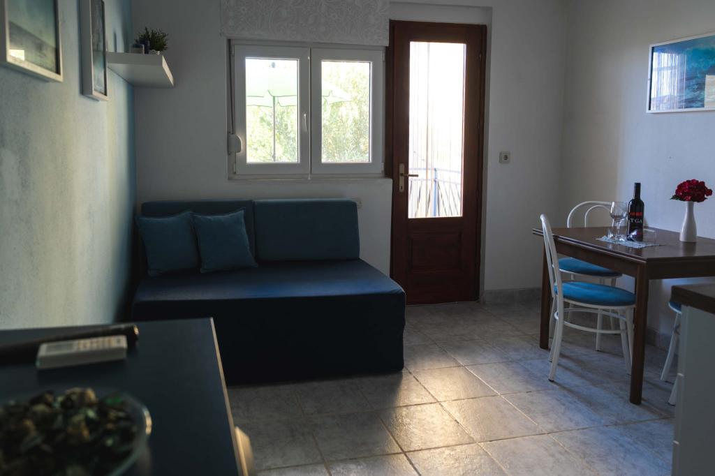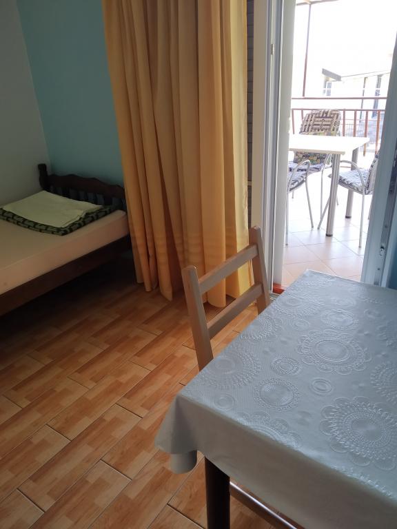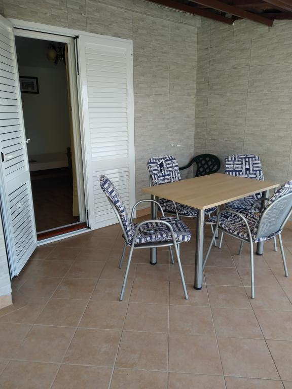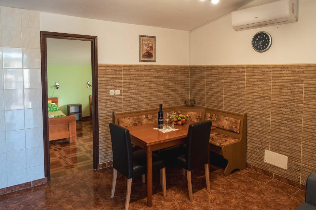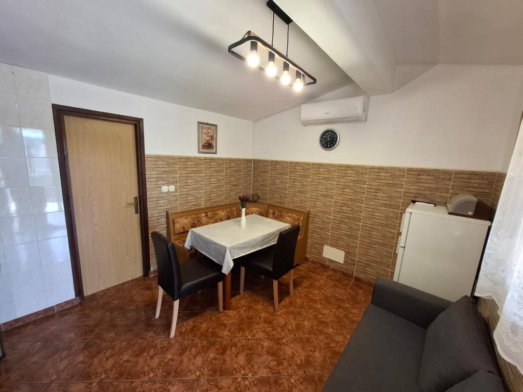 Četverokrevetni APP( 2 2) u mirnom dijelu Pakoštana. APP se sastoji od spavače sobe u kojoj je bračni krevet i trokrilni ormar. U dnevnom boravku je krevet na razvlačenje (200x140), stol sa četri stolice, a u jednom kutu je kuhinja. Kuhinja se sastoji od sudopra, peći za kuhanhe s pečnicom, te hladnjak sa zamrzivačem. Apartman posijeduje klimu i tv. Ispred APP je terasica sa stolom i četri stolice samo za Vaš APP. APP je na prvom katu privatne kuće. Dvosobni apartmani se sastoje od dvije spavaće sobe, kuhinje sa blagavaonom i wc sa tuš kabinom. Apartmani imaju veliku terasu sa pogledom na more, klimu. TV. U dvorištu je zidani roštilj dječije ljuljačke a parkiralište je u ograđenom prostoru.
