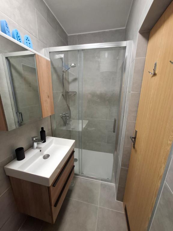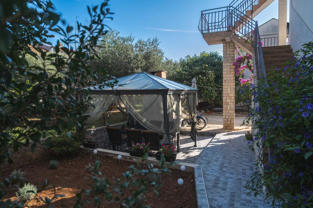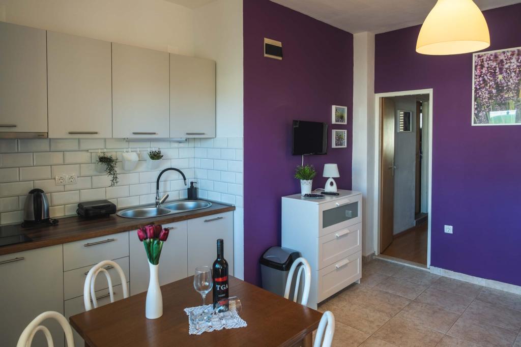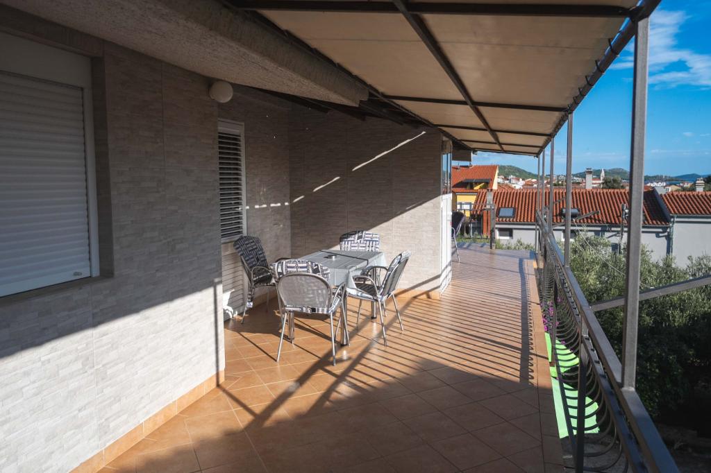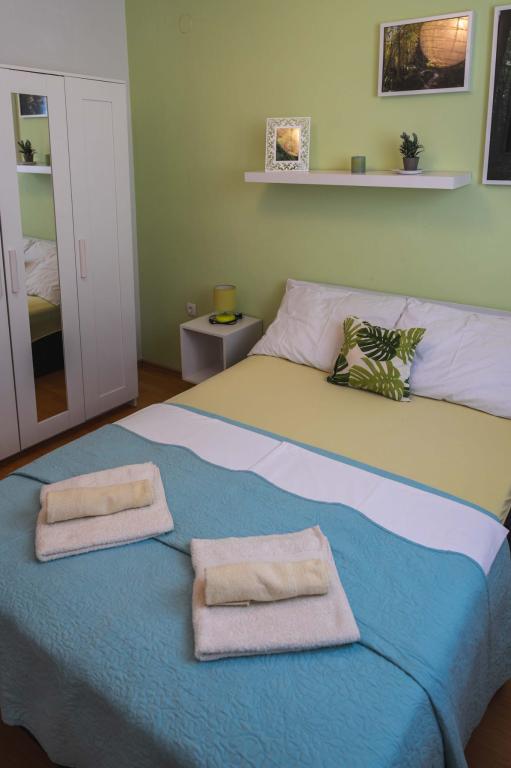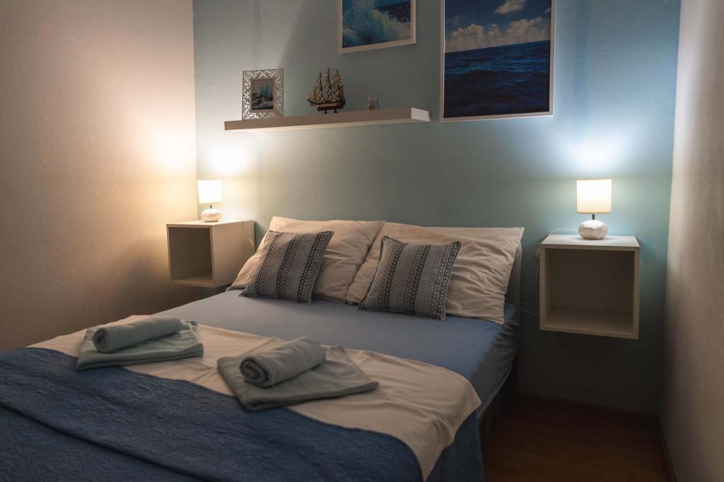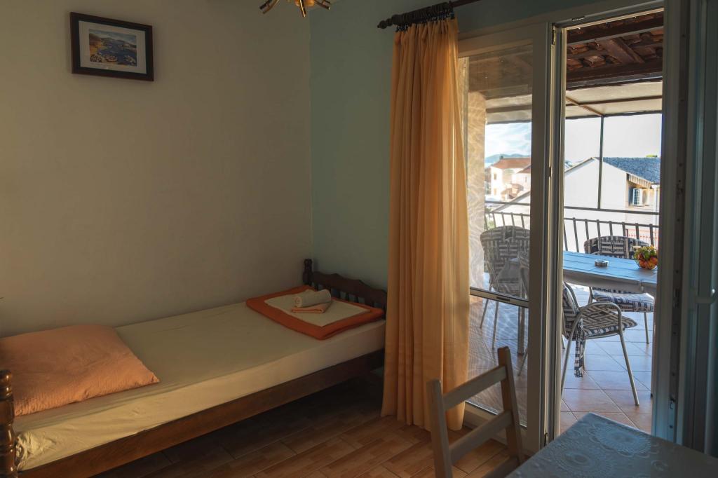 Četverokrevetni APP( 2 2) u mirnom dijelu Pakoštana. APP se sastoji od spavače sobe u kojoj je bračni krevet i trokrilni ormar. U dnevnom boravku je krevet na razvlačenje (200x140), stol sa četri stolice, a u jednom kutu je kuhinja. Kuhinja se sastoji od sudopra, peći za kuhanhe s pečnicom, te hladnjak sa zamrzivačem. Apartman posijeduje klimu i tv. Ispred APP je terasica sa stolom i četri stolice samo za Vaš APP. APP je na prvom katu privatne kuće. Dvosobni apartmani se sastoje od dvije spavaće sobe, kuhinje sa blagavaonom i wc sa tuš kabinom. Apartmani imaju veliku terasu sa pogledom na more, klimu. TV. U dvorištu je zidani roštilj dječije ljuljačke a parkiralište je u ograđenom prostoru.