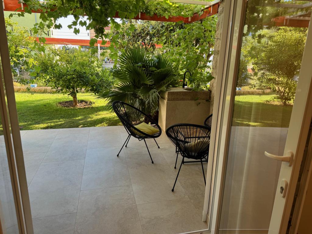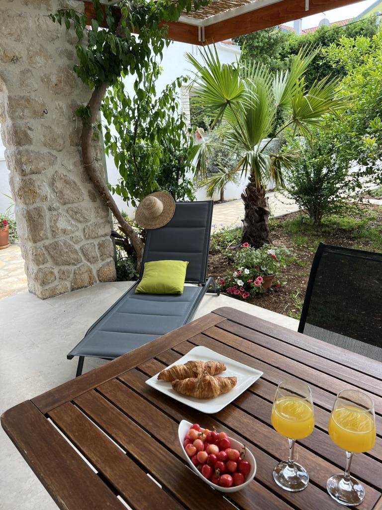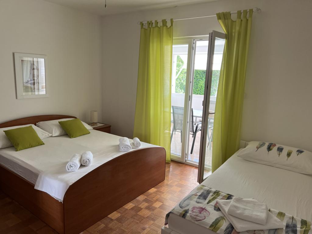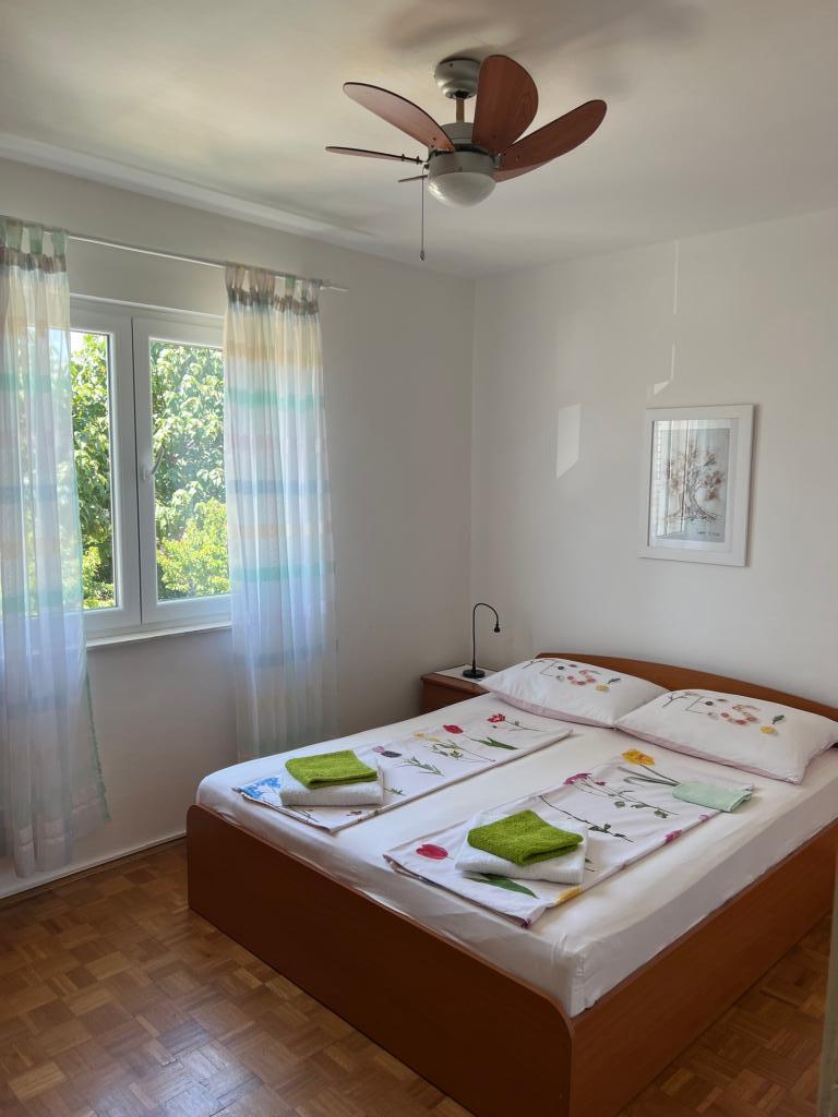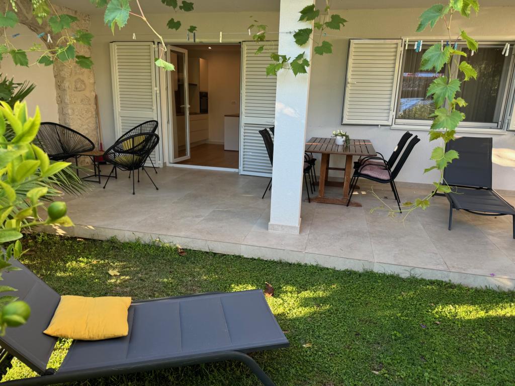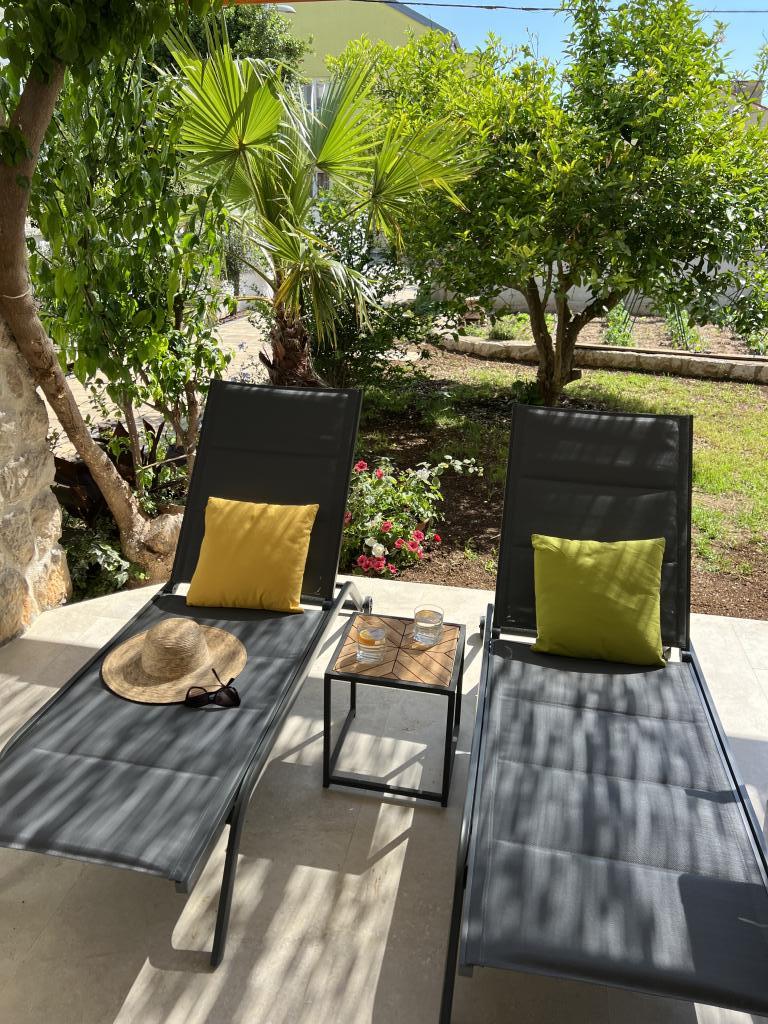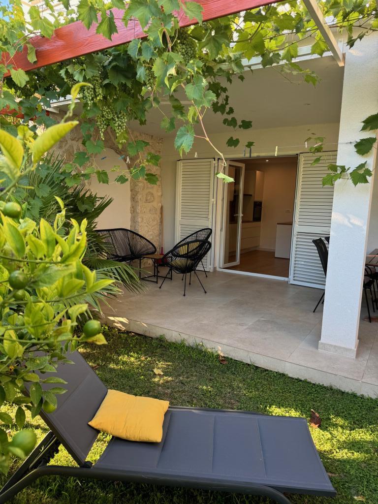 Kompletno opremljeni apartmani blizu centra mjesta u mirnoj ulici,drugi red od mora.Objekt se nalazi 3 minute hoda do centra te 5 minuta hoda do plaže.Objekt ima mnogo zelenila i hlada te gostima nudi uživanje u prostranim terasama.Veliki travnjak pogodan je za igru djece.Parking za automobile je u hladu.Turisti mogu koristiti grill u dvorištu. Domaćini su ljubazni i susretljivi te svojim iskustvom od preko 35 godina u turizmu jamče svojim gostima najbolju uslugu.