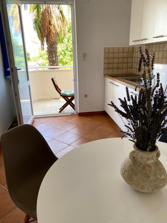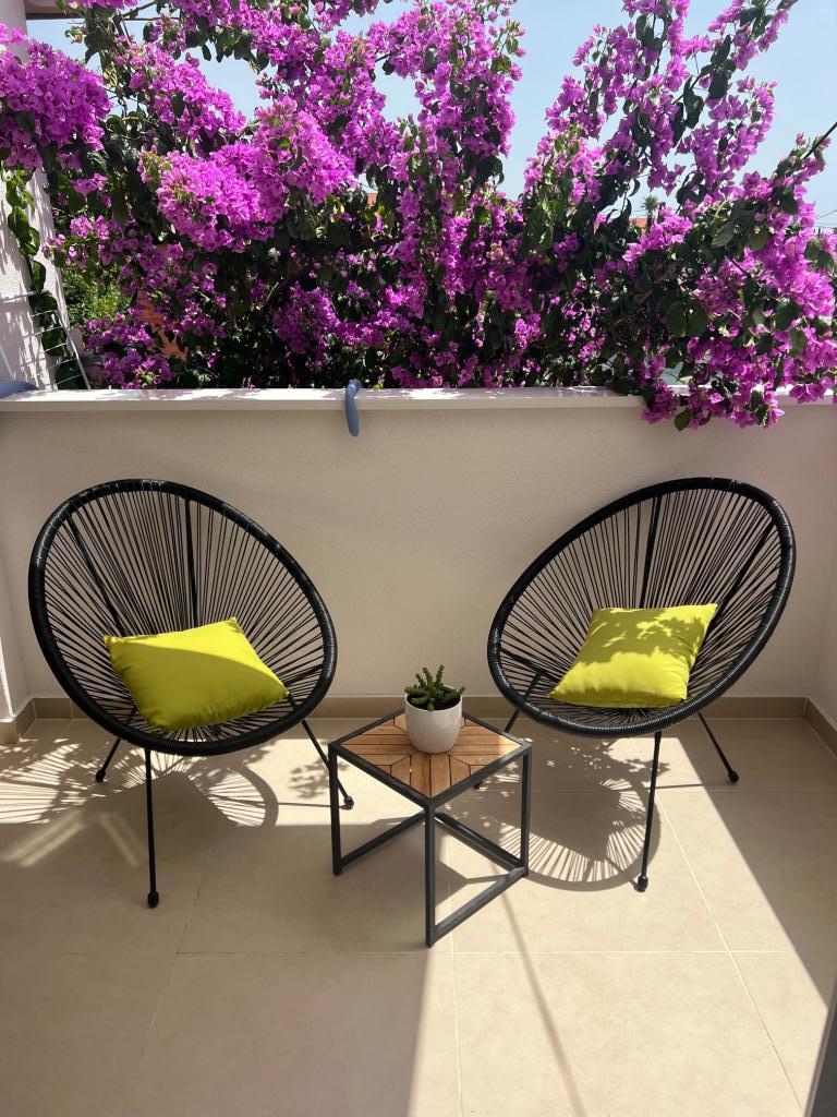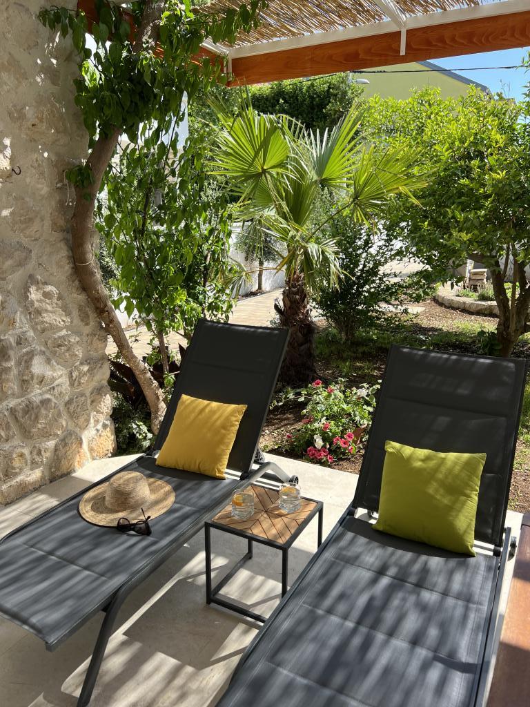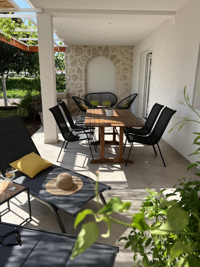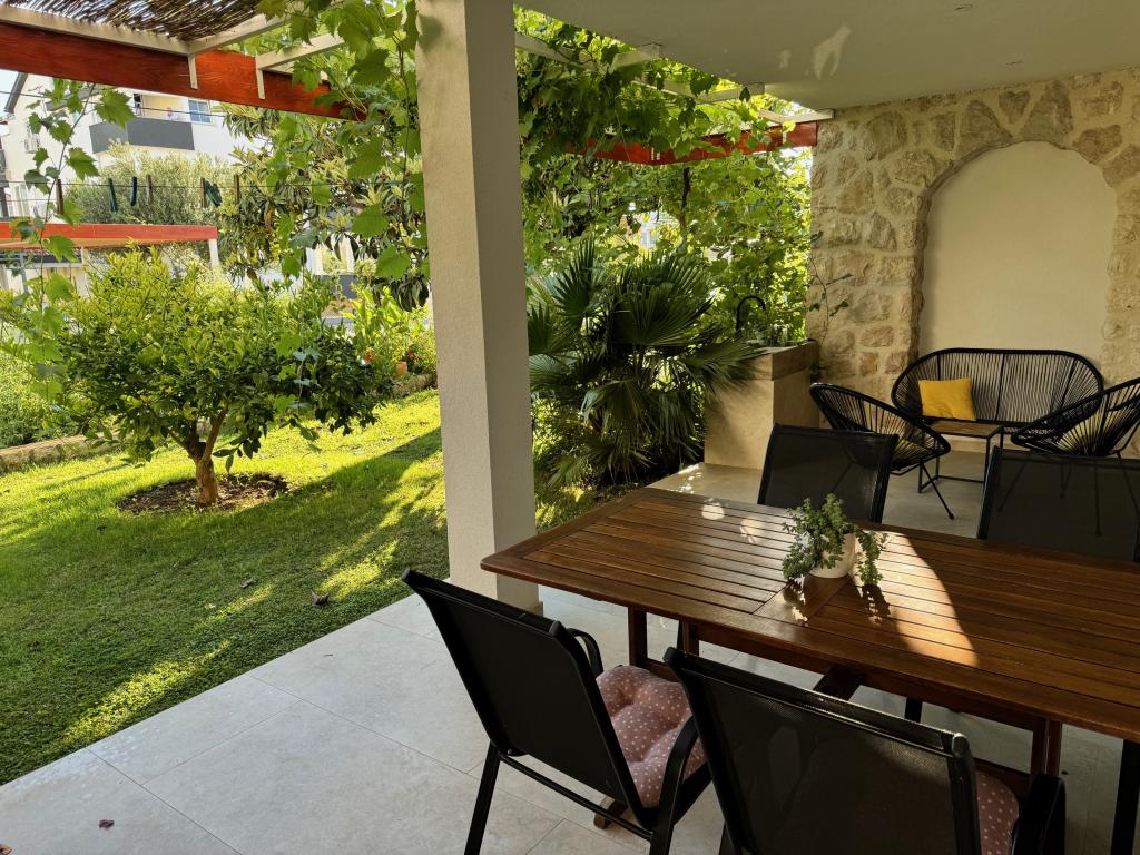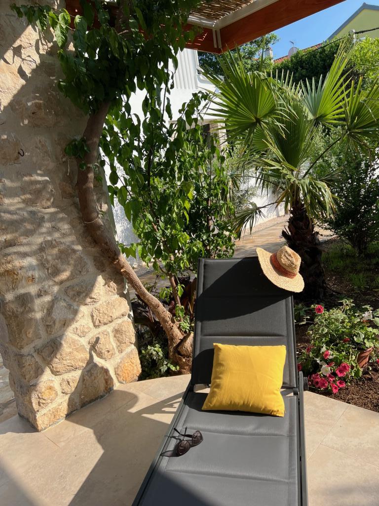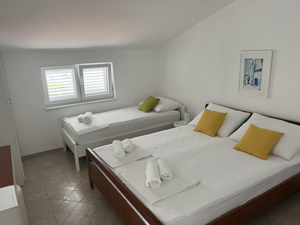 Kompletno opremljeni apartmani blizu centra mjesta u mirnoj ulici,drugi red od mora.Objekt se nalazi 3 minute hoda do centra te 5 minuta hoda do plaže.Objekt ima mnogo zelenila i hlada te gostima nudi uživanje u prostranim terasama.Veliki travnjak pogodan je za igru djece.Parking za automobile je u hladu.Turisti mogu koristiti grill u dvorištu. Domaćini su ljubazni i susretljivi te svojim iskustvom od preko 35 godina u turizmu jamče svojim gostima najbolju uslugu.