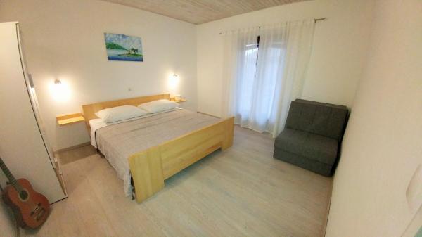 U kući su ukupno dva nova i suvremeno opremljena apartmana u prizemlju. Svaki raspolaže sa spavaćom sobom sa bračnim krevetom i dodatnim ležajevima. Za dodatno uživanje u svom odmoru gosti na raspolaganju imaju i terasu sa sjedećom garniturom i korištenjem grilla. Objekti se nalaze na istoj adresi Frankopanska 35. Za sve goste osiguran je privatan parking i besplatno korištenje bežičnog interneta. S obzirom na udaljenost apartmana od centra mjesta i plaža, domaćin je svim svojim gostima omogućio dnevne parkirališne karte koje vrijede za mjesto Pakoštane.