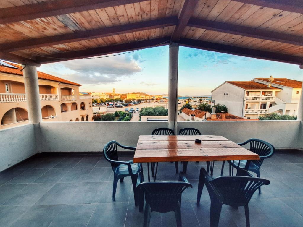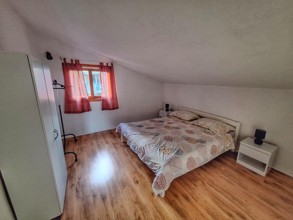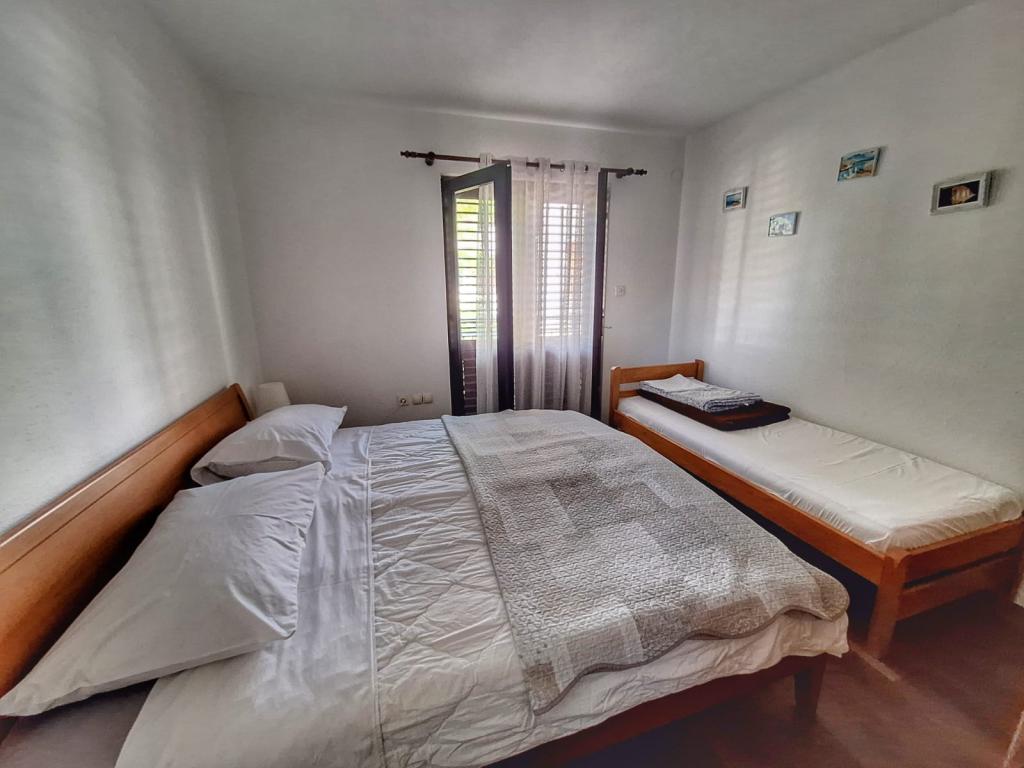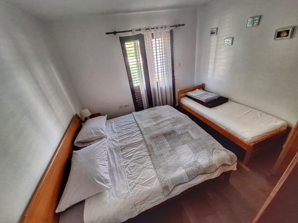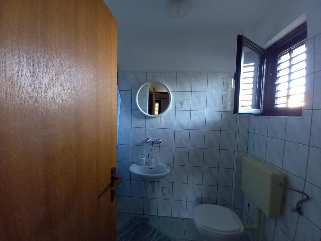 Kuća se nalazi u centru Pakoštana. Udaljena je nekoliko minuta hoda do centra mjesta i do plaže. U kući su dva apartmana veličine 50 m2 i nalaze se na prvom katu kuće. Apartman se sastoji od kuhinje s blagavaonicom, spavaćom sobom i kupaonicom. Spavaća soba ima bračni krevet te jedan pomoćni krevet, također još jedan pomoćni krevet u kuhinji/dnevnom boravku. Kuhinja je opremljena osnovnim kuhinjskim aparatima i osnovnim kuhinjskim posuđem. U dvorištu kuće je parkirno mjesto (zaštićeno od sunca). U cijenu smještaja je uključen Wi-Fi!