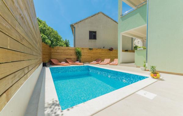 U kuci su smjestena cetiri apartmana kompletno i moderno opremljena u mirnom i šumom okruženom djelu Pakoštana. Smješteni su između Vranskog jezera i mora a u blizini četiri nacionalna parka. Objekt se nalazi 10 minuta hoda do plaže, centra i svih važnijih sadržaja. Osiguran je parking za svakog gosta. Kao dodatnI sadrzaj uz apartmane nalazi se i bazen.