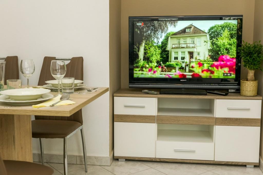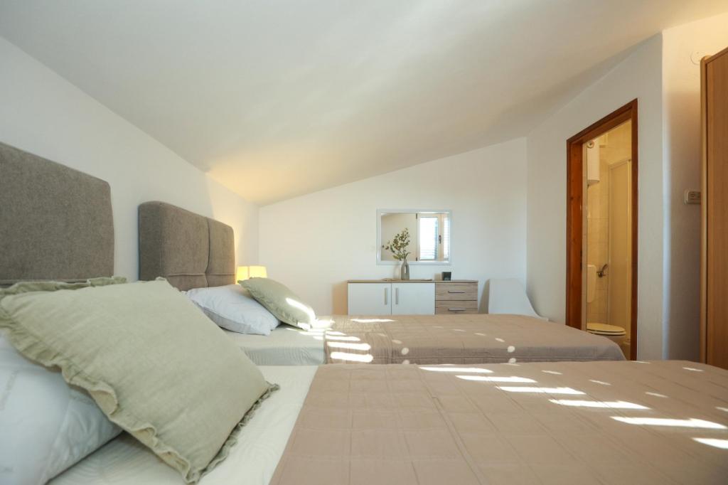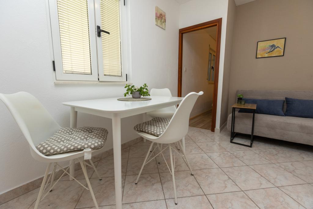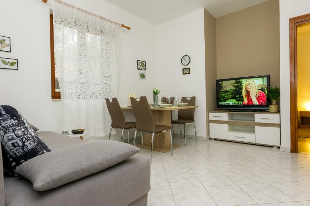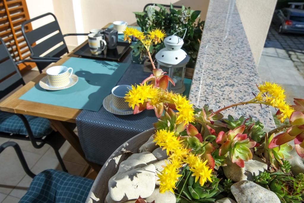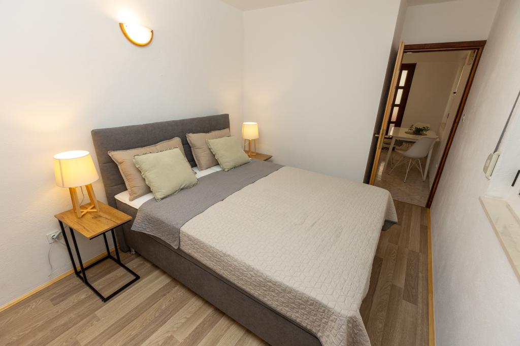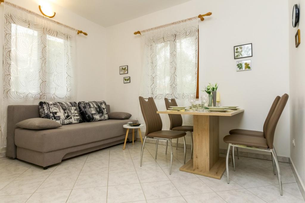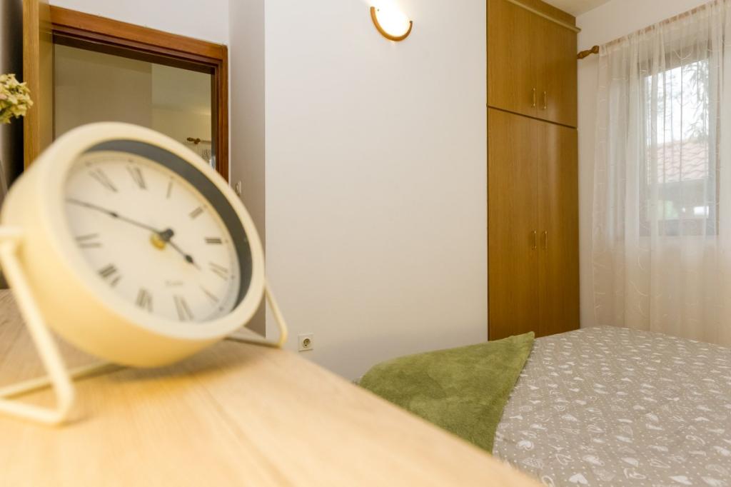 Objekt se nalazi na odličnoj lokaciji, svega 400 metara od centra mjesta, a svi potrebni sadržaji su u neposrednoj blizini – najbliža trgovina udaljena je samo 30 metara. Sastoji se od tri smještajne jedinice, pri čemu svaka ima vlastiti balkon, dok najveći apartman dodatno raspolaže s čak tri prostrane terase. Gostima je na raspolaganju i vanjski prostor koji uključuje staklenu sjenicu s kuhinjom, unutarnjim kaminom i velikim stolom idealnim za blagovanje. Ova ugodna zona za opuštanje smještena je usred zelenila i nudi ugodan ambijent za sjedenje na otvorenom. Smještaj je idealan za sve tipove gostiju, a posebno pogodan za obitelji s djecom, koja se mogu bezbrižno igrati u sigurnom i prostranom okruženju. Svaki apartman ima osigurano vlastito vanjsko parkirno mjesto.