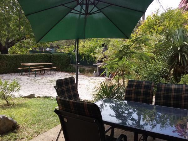 Imali smo zaista prekrasan boravak u ovim apartmanima. Iznimno su ugodni i pažljivo uređeni, sa svime što vam može zatrebati za ugodan odmor. Kuhinja je potpuno opremljena prekrasnim posuđem, mnoštvom čaša, lonaca i tava - sve nam je bilo nadohvat ruke. Jedno od naših omiljenih mjesta bila je prostrana, zasjenjena veranda s udobnim foteljama – savršeno mjesto za opuštanje u bilo koje doba dana. Ručnici su bili mekani i visoke kvalitete, što je doprinosilo osjećaju udobnosti i njege. Iako apartman nema perilicu rublja, domaćini su nam ljubazno dopustili da koristimo svoju, što je bilo vrlo korisno. Lokacija je apsolutno savršena - samo kratka šetnja do fantastičnog restorana, šarmantne trgovine voćem i povrćem, pekare i najljepše plaže u okolici. Supermarket i stari grad s prekrasnom šetnicom također su na pješačkoj udaljenosti. Kuća je skrivena u mirnom, zelenom susjedstvu okruženom drvećem, s pjevom ptica koji ispunjava zrak – uistinu spokojno okruženje. Bujni vrt ostao je hladan čak i za ljetnih vrućina, a nismo čak ni morali koristiti klima uređaje. Na posjedu se nalazi i sigurno parkiralište u sjeni, što je bilo vrlo praktično. Od srca hvala našim domaćinima – tako ljubaznim, pažljivim i velikodušnim ljudima. Odmah su odgovorili na svaki zahtjev i učinili da se osjećamo tako toplo dočekano. Duboko smo zahvalni na njihovoj brizi i gostoprimstvu.