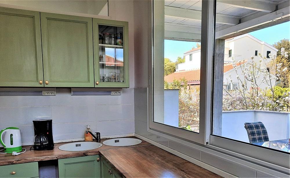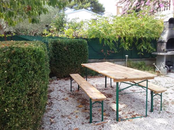 prekrasan vrt, parking u hladovini, udoban apartman sa svime potrebnim, uredno i čisto, odlična lokacija blizu plaže a bez gužve i buke ...