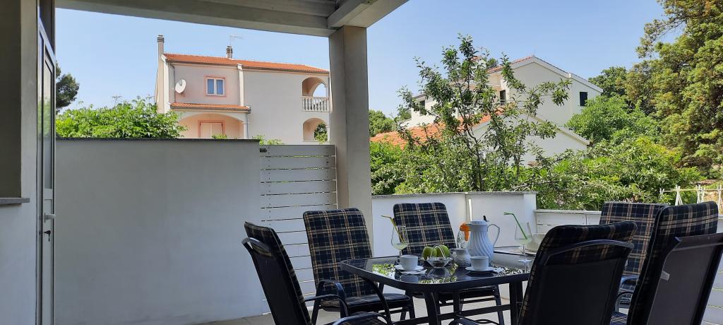 Iznajmljujemo apartmane od subote ili nedjelje . Kompletno i moderno opremljeni apartmani smješteni su u mirnom dijelu naselja u okruženju borove šume. Objekt se nalazi u turističkom dijelu naselja udaljen oko 10 minuta šetnje do plaže i 15 minuta do centra naselja. Parcela na kojoj se nalazi objekt dovoljno je velika da je na njoj osigurano parkiralište automobila. U vrtu se nalazi roštilj i prostor za druženje i blagovanje gostiju uz pripremljena jela sa roštilja.