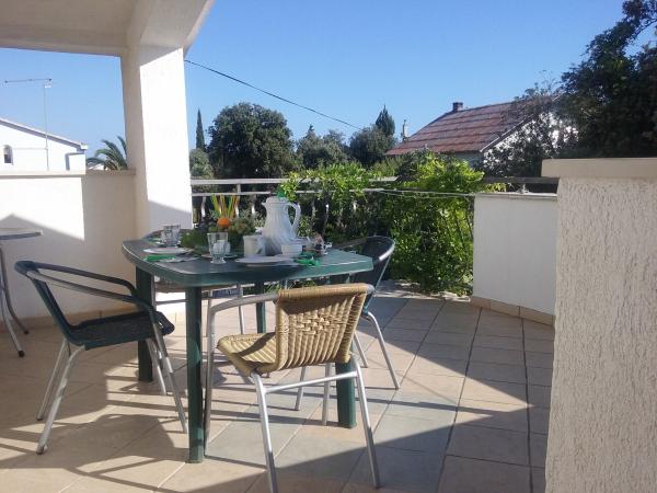 Prekrasan prostrani apartman. Idealna lokacija - mirna lokacija daleko od ceste. Blizina plaže, izvrstan riblji restoran, trgovina, pekara, voće i povrće. Ugodni i uslužni vlasnici. Dobar pristup sa ZADAR zračne luke. Parking za automobile. Spremište za bicikle. Prekrasan vrt. Mogućnost roštiljanje. Mirno mjesto za aktivan odmor. Izleti u Kornate, Krku, Plitvice. Mogu samo preporučiti :-)))