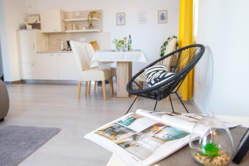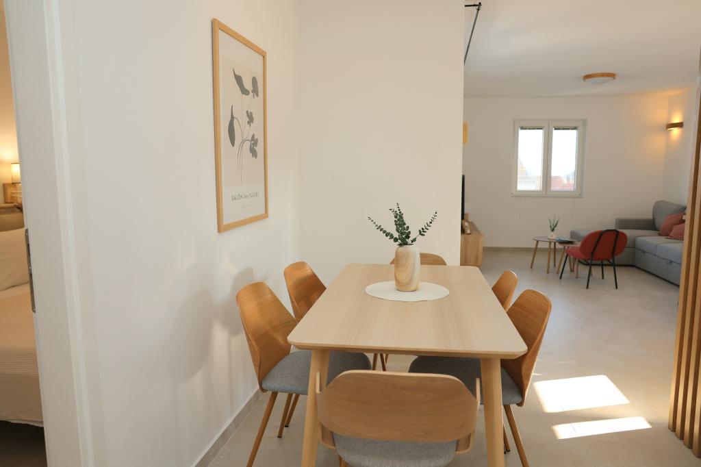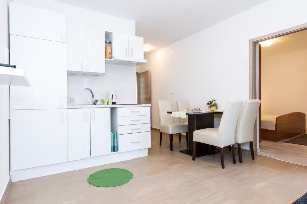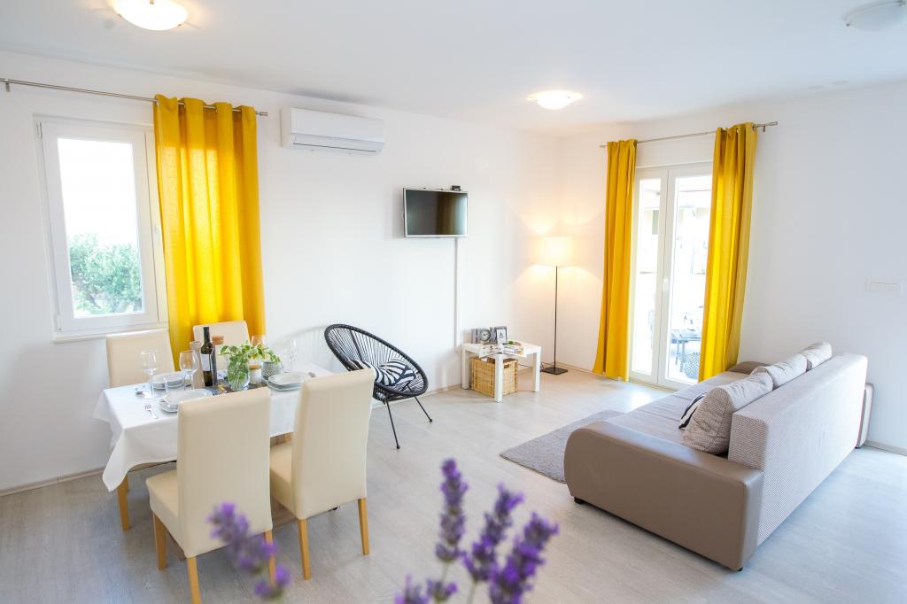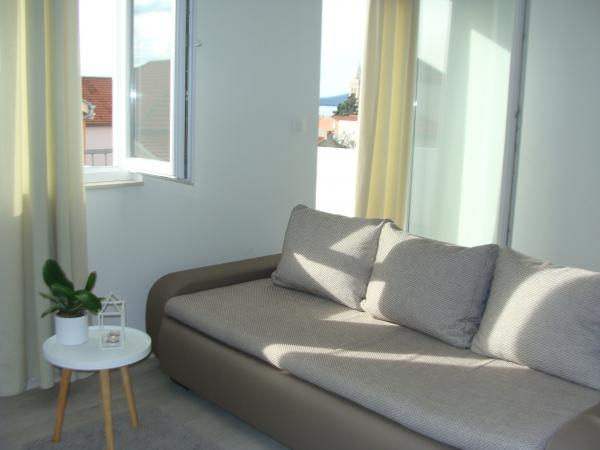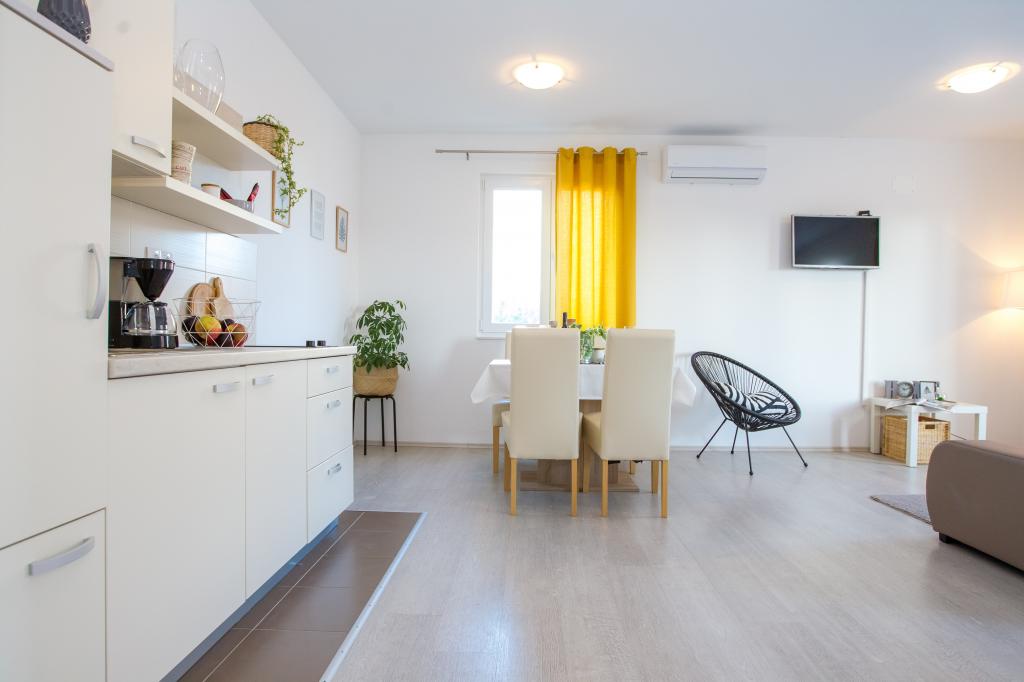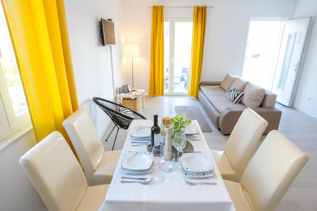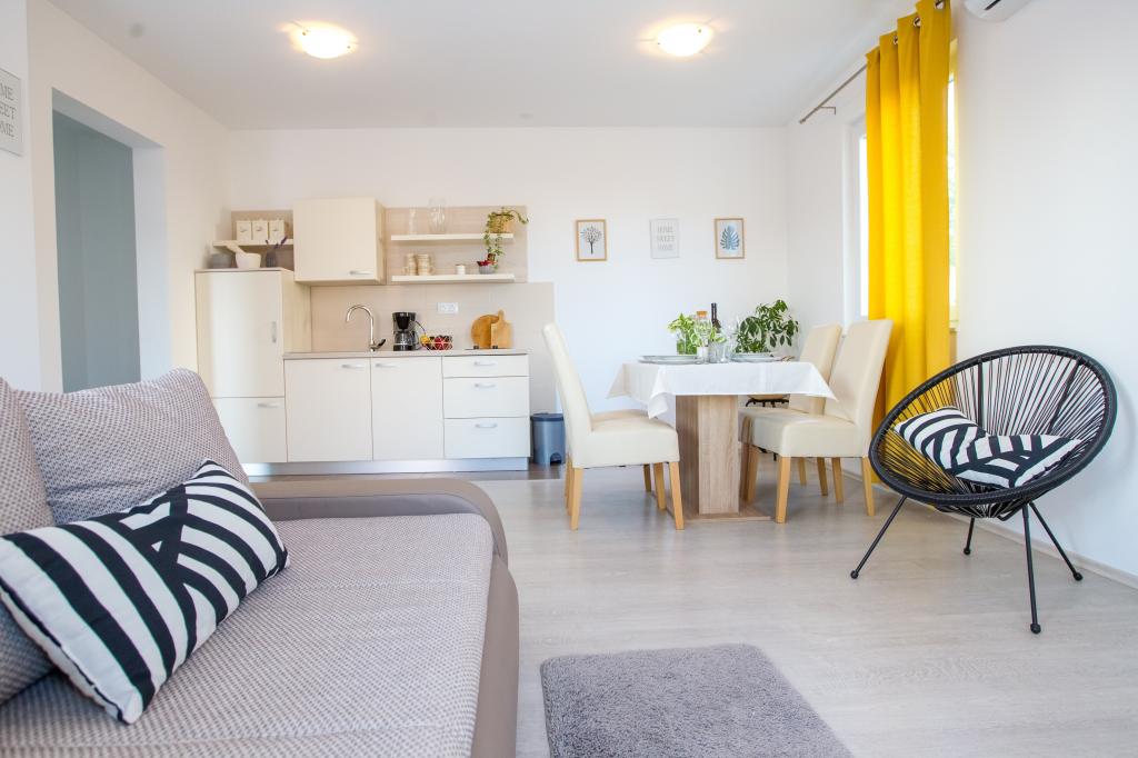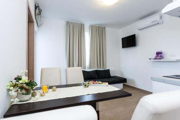 Atraktivna lokacija u mirnom mjestu, a opet u blizini plaže i centra. Apartman čisto, ukusno uređena sa svim potrebnim priborom. Vrlo zgodan i udoban. Veliki kontakt s vlasnicima.