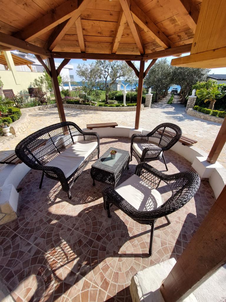Kuća sa apartmanima smještena je na atraktivnoj lokaciji, prvi red do mora na plaži Janice. Ispred kuće nalaze se osigurana parkirna mjesta za svako vozilo. Veliki vrt sa sjenicom za sjedenje.