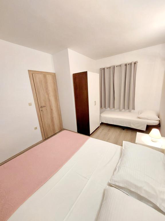 Proveli smo 7 dana u apartmanu 2+2. Kratko, ali slatko. Apartman je bio velik, čist i imao je sve što vam treba. Kreveti su bili udobni, terasa velika, a okolina jako lijepa. More je udaljeno minutu hoda. Trgovina je udaljena 3 minute. Pješice, a prvi pub je udaljen 1 minutu. Vlasnici su vrlo dobri domaćini. Ljubazni, iskreni i vrlo uslužni. Svakako ćemo im se vratiti sljedeće godine.