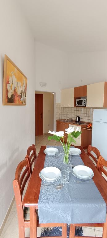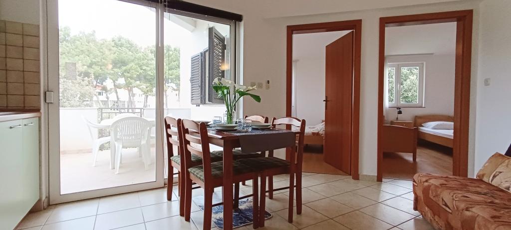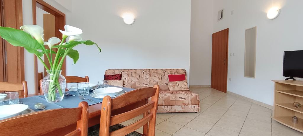 Moderno opremljeni apartmani u turističkom dijelu Pakoštana. Apartmani se nalaze 5-10 minuta hoda od plaža i centra mjesta. U blizini apartmana se nalazi supermarket i sportski tereni, Objekt se nalazi na površini od 1600 m2 s uređenim dvorištem i parkirnim mjestima te grillom za goste. U svim apartmanima se nalazi posteljina i ručnici za goste. Kuhinja je opremljena sa svom potrebnom kuhinjskom opremom. U glavnom hodniku se nalazi stol za glačanje. Boravišna pristojba, klimatizacija i WiFi su uključene u cijenu. Kućni ljubimci su dobrodošli. Cijena za kućne ljubimce iznosi 5 Eur/Dan. Check in od 14 h. Check out do 10 h.