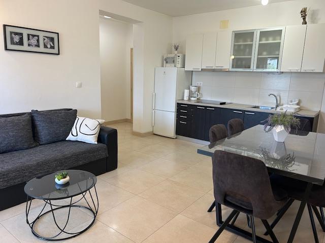 Vrlo lijep, prostran stan sa prekrasnom terasom, potpuno opremljenom kuhinjom i parkingom. Nekoliko minuta od plaže, trgovine, restorana. Vlasnik je bio jako ljubazan i uslužan. Hvala