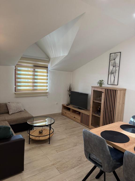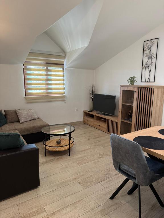 Dobar broj prijateljskih vlasnika koji borave u kući nesumnjivo je velika prednost velike terase, zajedno s opremom. Apartman je dobro prozračan i izuzetno ukusno namješten. Dovoljno je parkirno mjesto u dvorištu, nikada ne morate tražiti prostor kad se vratite u auto. Pristup i čistoća smještaja i svega oko je na najvišoj razini. Samo u krevetu možete učiniti više da se utješi. Rado ćemo se vratiti.