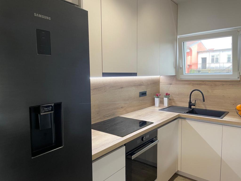 Kompletno opremljeni apartmani u mirnijem djelu mjesta sa osiguranim parkingom.