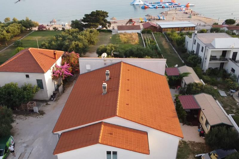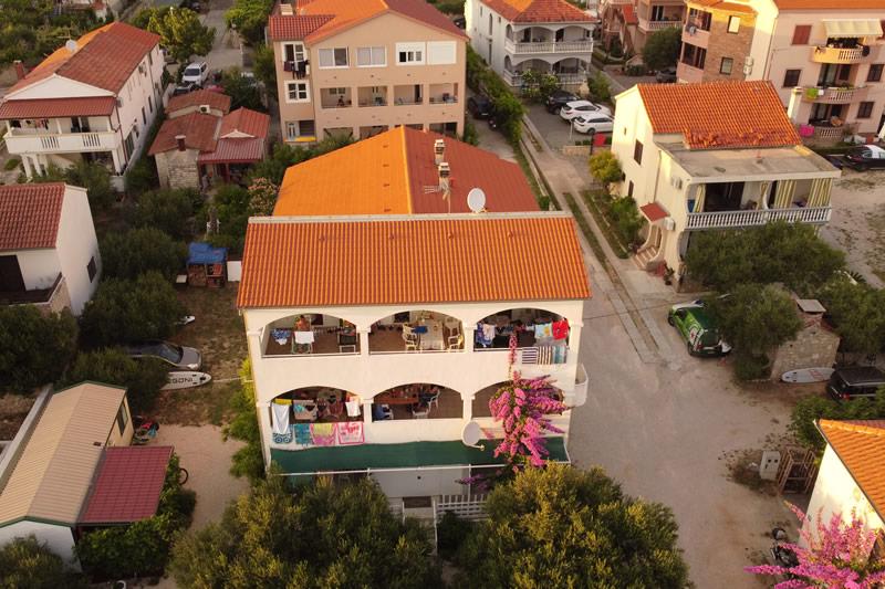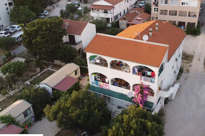 Apartmani Sinjal se nalaze u obiteljskoj kući, odmah uz prekrasnu pješčanu plažu. Svi apartmani u ponudi imaju vlastitu terasu sa pogledom na more. Uživajte u prekrasnom pogledu na obližnje otoke i prekrasno Jadransko more. Nalazimo se tridesetak metara od plaže i oko 200 m od centra mjesta. U masliniku ispred kuče se nalazi parking i roštilj. Svi apartmani su klimatizirani i imaju besplatan Internet. Mobilne kuče su smještene u masliniku ispred kuče.