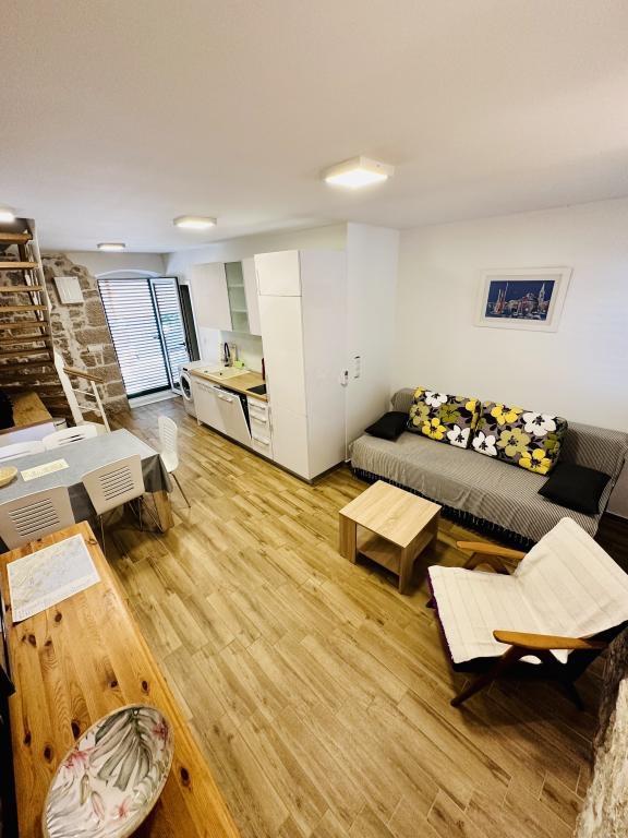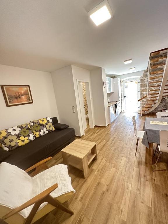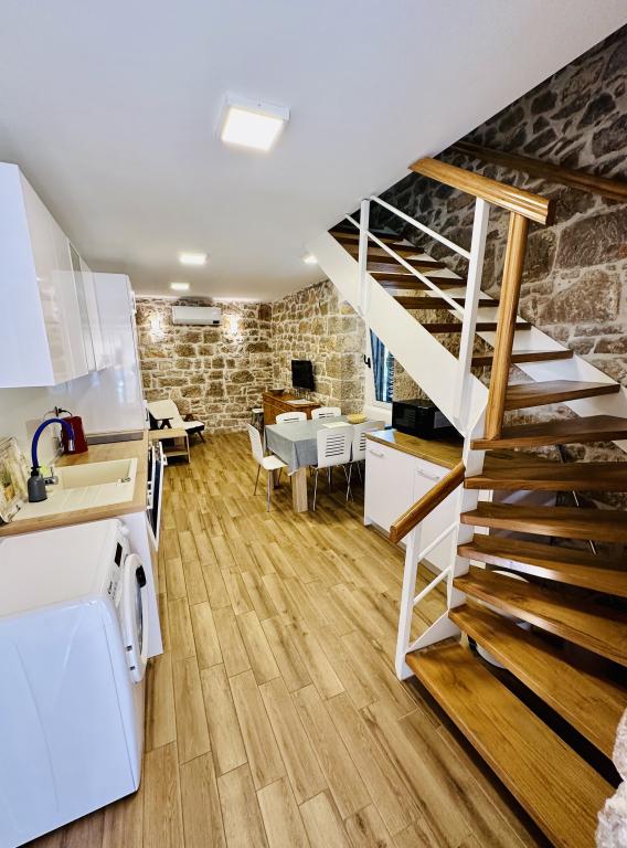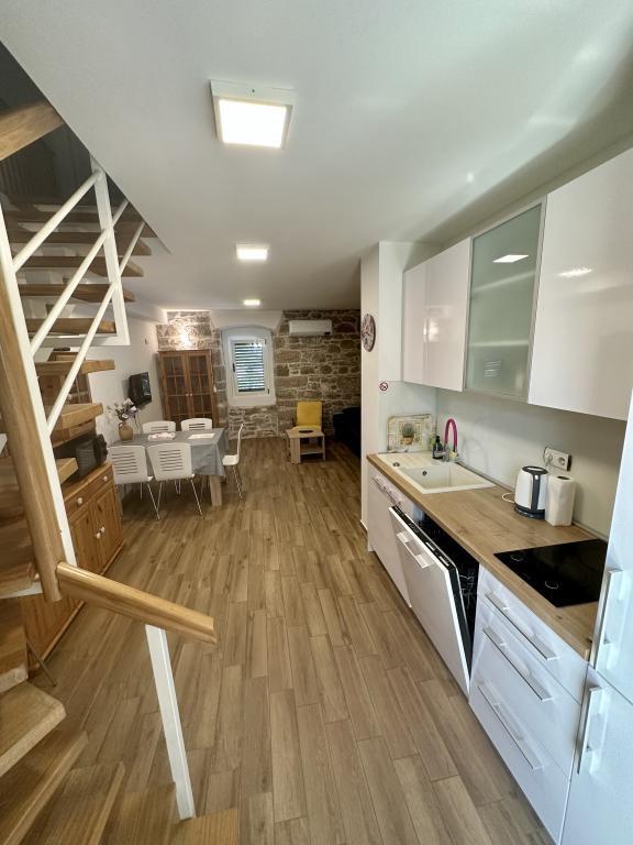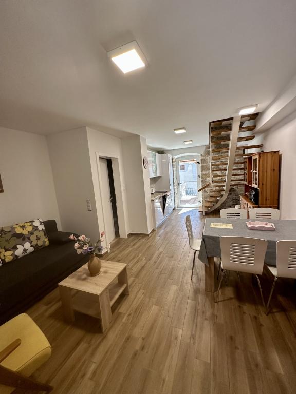 Prekrasna autohtona kamena kuća u centru Pakoštana blizu svih sadržaja. Kuća se sastoji od 2 apartmana za 4+2 osobe (ukupno max 8+4 osobe) potpuno opremljenih za Vaš savršeni odmor (klima, WI-FI, satTV, parking, grill, pogled na more).
