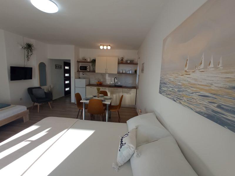 Apartman je idealan za dvije osobe. Čist, uredan i opremljen sa svim što je potrebno. Nalazi se blizu mora, restorana, kafića... Vlasnici apartmana su izuzetno ugodni, komunikativni i uvijek na usluzi. Ako će biti prilike, dolazimo i sljedeće godine. Osim smještaja, prodaju i svoje domaće proizvode. Smokve su odlične!