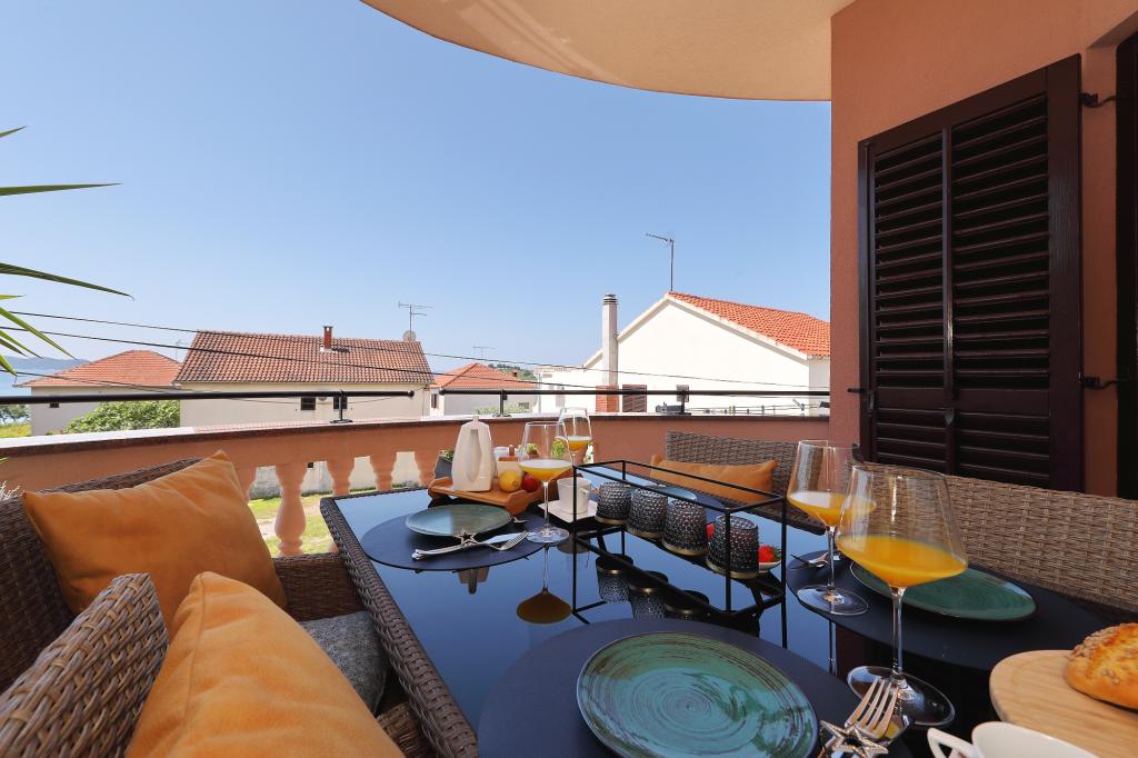 Apartman prvi red do mora - prva kategorija. Zaista smo uživali u našem boravku, osjećali smo se kao kod kuće, s razlikom, osim uz more. Domaćini su jako ljubazni, uvijek tu za sve što trebate. Apartman je potpuno novo namješten i renoviran, prostran i luksuzan i vrlo blizu plaže, samo pratite put i tamo ste. Posebno su nam se svidjela djeca, jer su im plaža, zabava i soba bili na dohvat ruke. Parking je u dvorištu, odmah ispred objekta i sve je vrlo dostupno pješice (plaža, trgovina iza ugla, pekara preko puta, igralište vidljivo s balkona itd.). Internet je radio besprijekorno, tako da rad od kuće (čitaj praznici) nije problem. Bili smo obitelj (2 plus 3 djece). Bilo nam je savršeno i vratit ćemo se na sljedeći odmor.