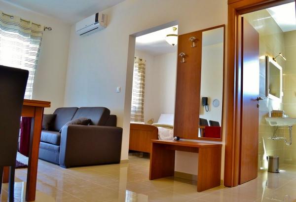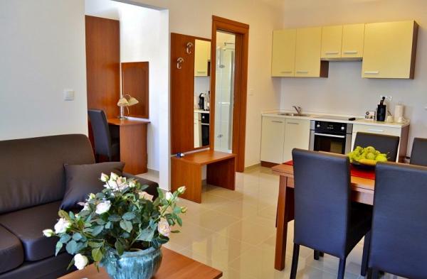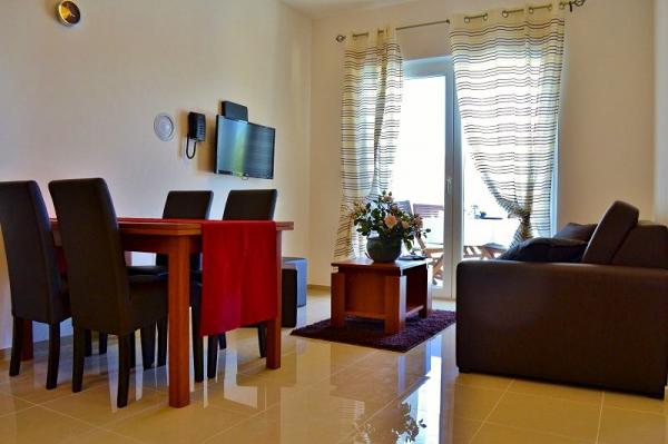 Turistička pristojba nije uključena u cijenu.U cijenu uključeno: -madraci od memory pjene debljine 22cm -udobna pamučna posteljin -promjena posteljine -promjena ručnika -čišćenje apartmana -klima uređaj (hlađenje/grijanje) -sef -bežični internet -telefon -LCD LED FULL HD TV sa 120 tv kanala + 50 radio kanala -sušilo za kosu -napa -pećnica -hladnjak sa zamrzivačem -keramička električna ploča 4 kuhala -posuđe,pribor i dodaci za pripremu hrane -aparat za kavu Dolce Gusto (gratis kava za svakog gosta za svaki dan boravka) -korištenje bazena (24/7) -korištenje ležaljki -ograđeni parking u sklopu objekta -korištenje perilice i sušilice rublja u posebnom prostoru za pranje rublja -korištenje vanjske pečenjare/roštilja -privatna terasa s garniturom za sjedenje -vanjski tuš -krevetić za dijete