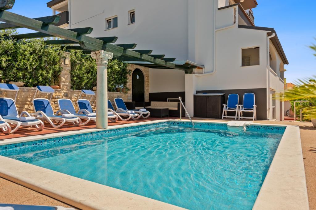 Apartmani su u samom centru mjesta, blizina plaža, restorana i drugih ponuda što je turistička zajednica Pakoštane pripremila u ponudi za ovo ljeto (razni koncerti, gastronomski meniji, fešte i zabave). Apartmani su moderno opremljeni sa svim potrebnim sadržajima (posuđe, mikrovalne, kuhala za vodu, kafe-aparati, klime, posteljina, ručnici). Izrazito držimo do čistoće apartmana i cijele okućnice (bazen, gril, parking) i nastojimo da naši gosti uživaju u potpunosti u našim apartmanima.