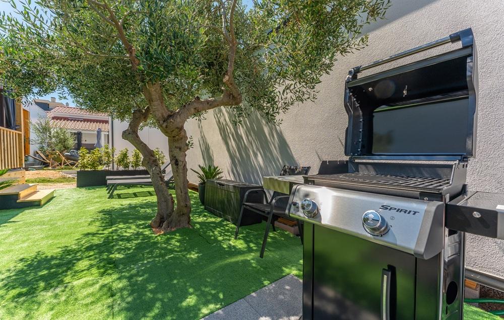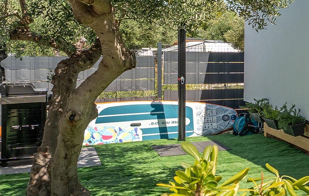 Gosti na raspolaganju imaju veš mašinu, perilicu posuđa, klimu, vanjski i unutarnji hladnjak, ventilator na terasi, Tv u dnevnom boravku i na terasi. Kućica ima dvije spavaće sobe sa krevetima 160 cm širine. Kreveti su opremljeni kvalitetnim madracima, nadmadracima i satenskom posteljinom. Kuhinja je potpuno opremljena posuđem i kuhinjskim uređajima: caffe aparat, pećnica, mikrovalna, toster… U dvorištu je gostima na raspolaganju roštilj, ležaljke za sunčanje i dvije SUP daske. U kućica je dostupan brzi StarLink internet.