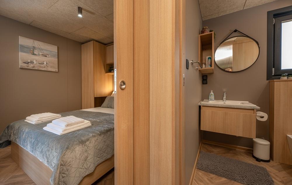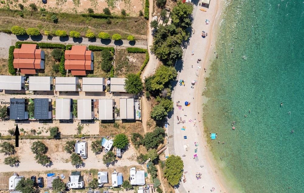 High standard mobile home„ENJOY BY BEACH“ - by the beach Janice. Mobilna kućica „Enjoy by Beach“ smještena je u Kampu Skalinada 4*, svega 100m iznad plaže Janice i 800 m od centra Pakoštana. Kuća je potpuno nova i opremljena po visokom standardu. U tijeku boravka vlasnik kućice vam stoji na raspolaganju za sve vaše potrebe i želje.