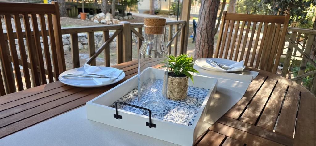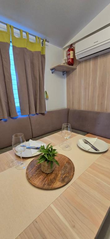 Turistička pristojba nije uključena u cijenu.U kampu gosti mogu uživati u supermarketu, caffe baru, restoranu, dječjim igralištima, dječjem klubu, wellness centru i raznim sportskim sadržajima. Recepcija kampa otvorena je 24 sata dnevno, 7 dana u tjednu. Uz svaku mobilnu kućicu najam sup-a je uključen, a u 7 dnevnom boravku možete koristiti jedan kajak za jedan najam besplatno.