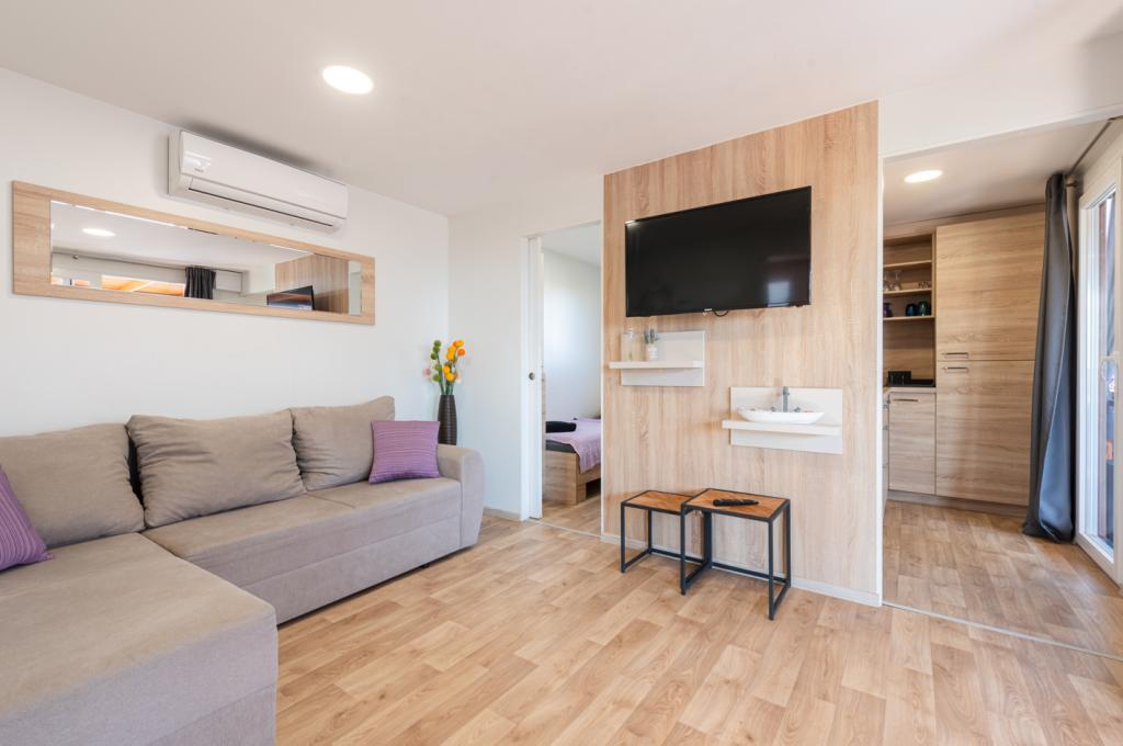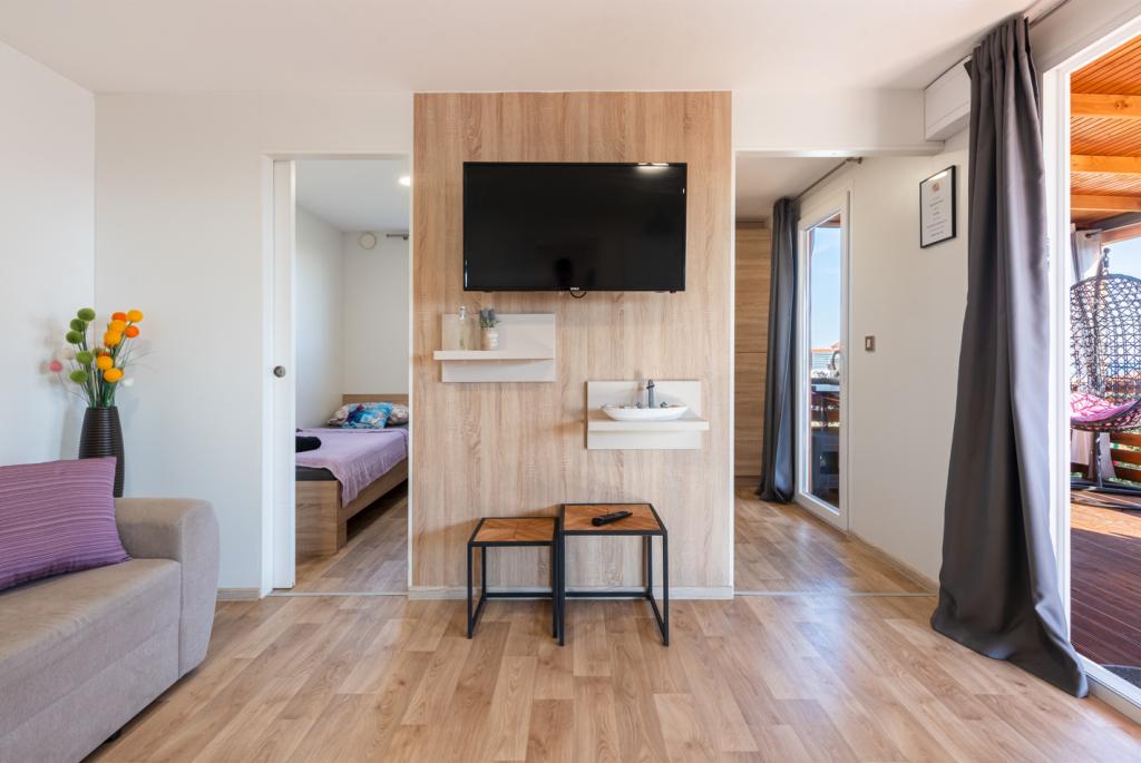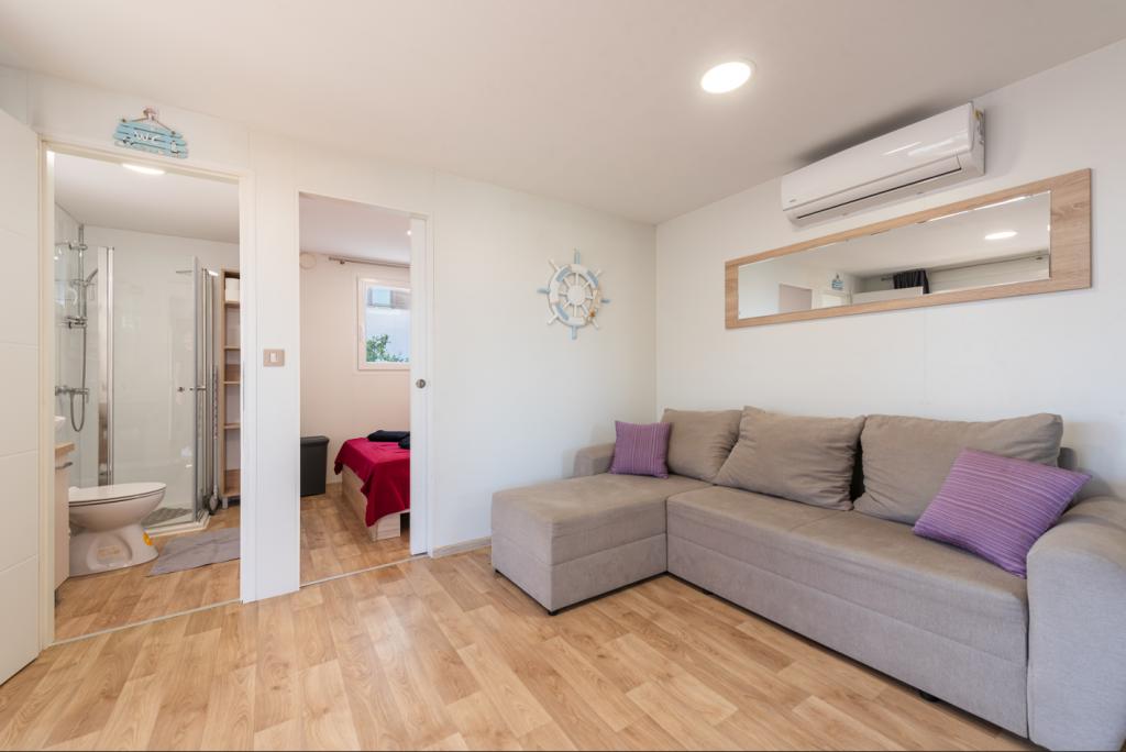 Mobile house Seashell smještena je u predivnom dalmatinskom mjestu Pakoštane. Sama kućica nalazi se u privatnom kampu Mara , udaljenom od glavne plaže svega 2-3 minute laganog hoda. Za potpuni i nesmetani užitak našim dragim gostima omogućili smo klima uređaj, WiFi u svim prostorijama i na terasi, veliki plinski roštilj, tv + (HBO), privatno parkiralište za dva vozila te veliku (24m2) i natkrivenu terasu. Kamp Mara nalazi se u samom centru mjesta Pakoštane udaljen od glavne rive i plaže svega dvjestotinjak metara. Sami kamp i kućica nalaze se u slijepoj ulici na izrazito mirnoj i ugodnoj lokaciji. CHECK IN: od 14 sati CHECK OUT: do 10 sati