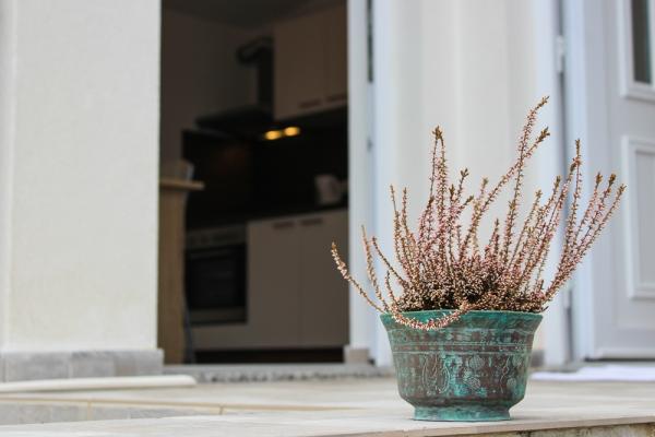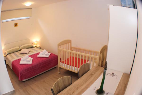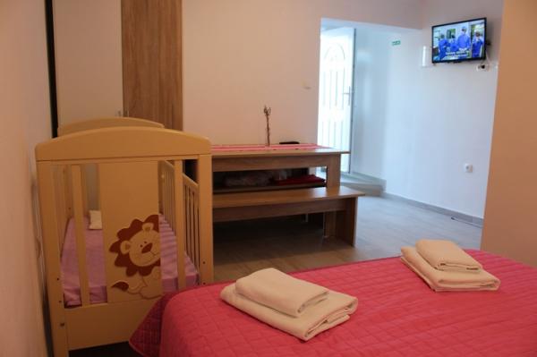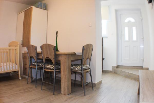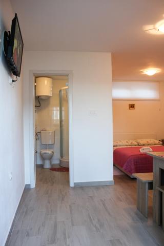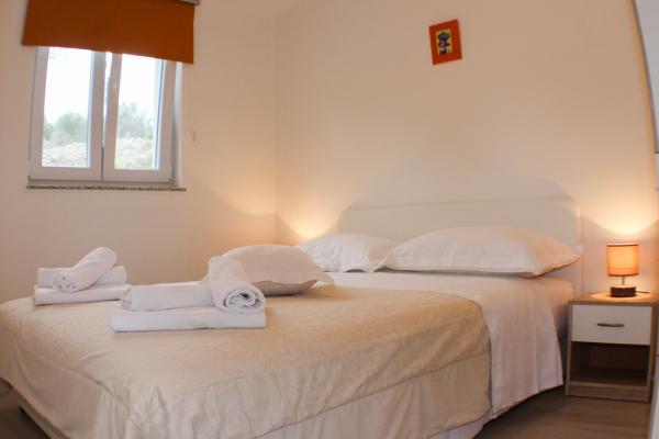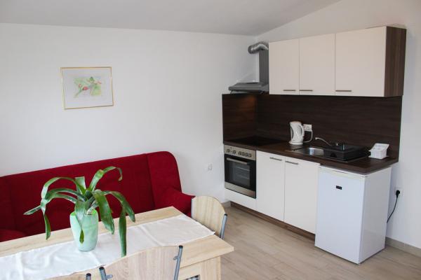 Kuća/Residence Kuća s više apartmana. Mirno, sunčano mjesto, 160 m od mora, 160 m od plaže. Za zajedničko korištenje: parcela 500 m2. Vrtna garnitura za sjedenje. U kući: pristup internetu. Parking uz kuću na parceli. Trgovina, restoran 220 m, plaža s oblucima 160 m. 1 -sobni apartman 32 m2, u prizemlju, prema jugoistoku. 1 soba s 1 franc. krevetom (160 cm, dužina 200 cm). Blagovaona s TV-om sa sat. prijemnikom (plosnatim TV ekranom). Otvorena kuhinja (pećnica, 4 staklokeramičke ploče za kuhanje). Tuš/WC. Na raspolaganju: Internet (wireless LAN [WLAN], besplatan).