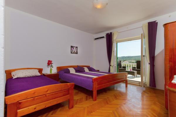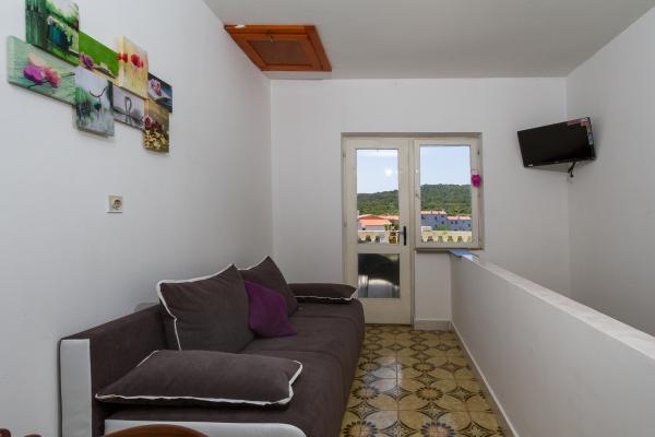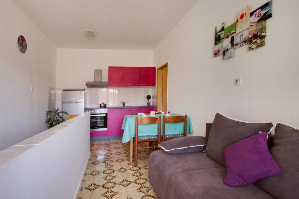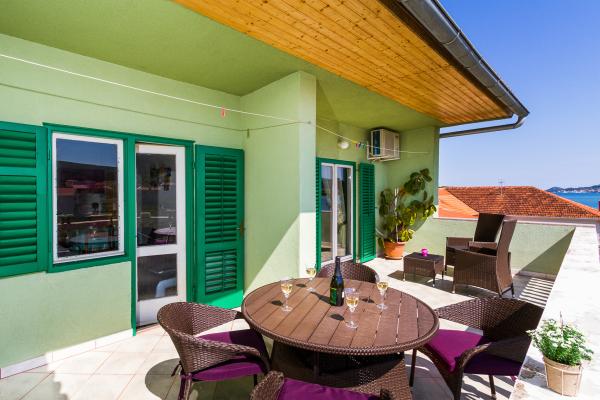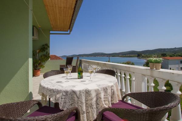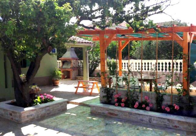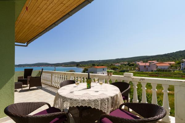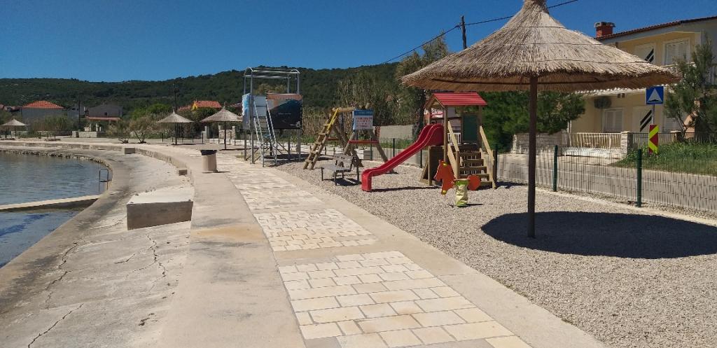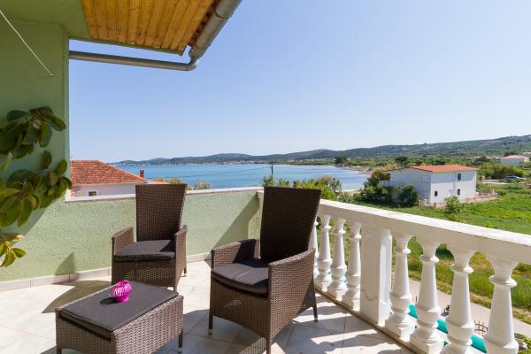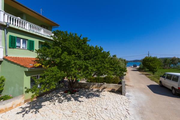 MI SMO PRVI RED DO MORA. Idealno za obiteljski odmor. Pješčana plaža udaljena je od apartmana 20 m. Centar mjesta udaljen je svega 200 m. Apartmani su u obiteljskoj kući, na 2 kata. U cijenu je ukljucen BESPLATAN WIFI, besplatno parkirno mjesto, klima, vanjski roštilj. A5 - se nalazi na 2. katu. Ima spavaću sobu s bračnim krevetom (180 - 200 cm) i s 2 kreveta za jednu osobu, wc, posebni dnevni boravak s trosjedom na razvlačenje, LCD i novom kuhinjom. Apartman ima ogromnu terasu s pogledom na cijeli pašmanski kanal. Ima klimu. A4 1 se nalazi na 1. katu. Ima spavaću sobu s bračnim krevetom (180 - 200 cm) i trosjedom na razvlačenje, posebno odvojen dnevni boravak s kutnom garniturom na razvlačenje za 2 osobe, LCD, wc, kuhinju. Svaka soba ima svoj balkon s pogledom na more. Ima klimu.