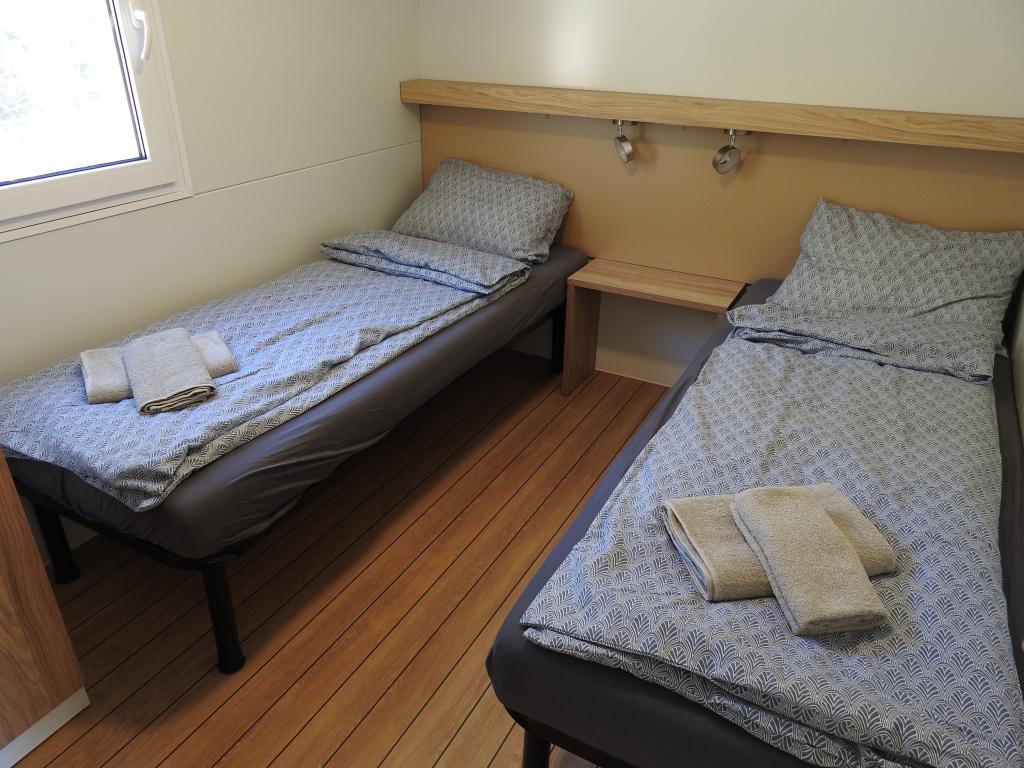 Želite pobjeći od gradske vreve i uživati u netaknutoj prirodi, gdje možete biciklirati, planinariti i istraživati skrivene uvale s kristalno čistim morem? Planirajte ovogodišnji odmor na otoku Pašman u sjevernoj Dalmaciji.Iznajmljujemo novu mobilnu kućicu Adria u uvali Lučina. Kućica s ogromnom terasom pogodna je za 6 osoba i kućne ljubimce (zatvorena terasa) a od mora je udaljena samo 80m. Sastoji se od 2 spavaće sobe, kuhinje, dnevnog boravka i kupaonice s WC-om. Opremljena je klima uređajem, TV-om, hladnjakom, perilicom posuđa, svim potrebnim priborom, roštiljem itd.Smještena je u malom kampu Pašman ****, koji je pogodan za obitelji i grupe koje žele opuštanje i prijateljski stav osoblja. Po dogovoru uprava kampa organizira izlete i razne aktivnosti. Plaža je pogodna za malu djecu, jer je more u većem dijelu uvale plitko s pješčanim dnom.