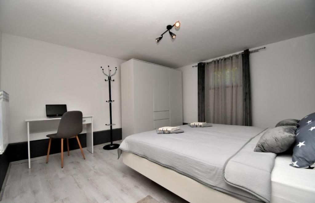 Kompletno opremljen apartman u mirnom predjelu. Objekt se nalazi 10 minuta hoda do adrenalinskog parka te 5 minuta hoda do restorana sa domaćom lokalnom hranom. Ostale atrakcije u blizini: Kaštel Dvigrad 13 km Pazinski kaštel 15 km Kaštel Morosini - Grimani 20 km Traktor Story 24 km Poreč Main Square 22 km Rovinjski akvarij 32 km Kuća istarskog pršuta 6 km
