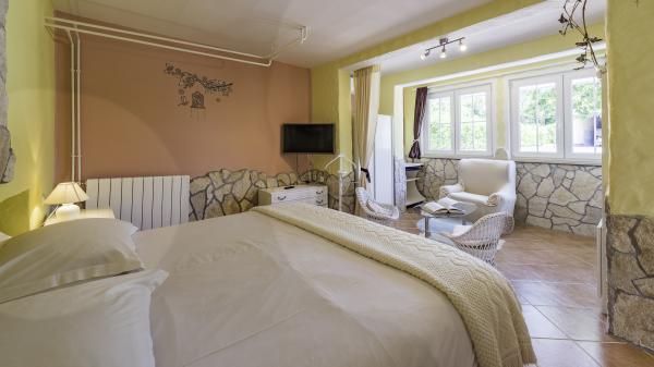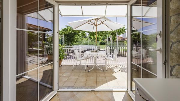 Lijepo uređen apartman sa jednom spavaćom sobom i privatnim vrtom. Apartman Andrej se nalazi u mjestu Muntrilj kod Tinjana, u prizemlju obiteljske kuće. Sastoji se od: kuhinje / blagovaonice, spavaće sobe s bračnim krevetom, kupaonice i terase. Kuhinja je opremljena plinskim štednjakom, pećnicom, aparatom za kavu i hladnjakom. U blagovaonici se nalazi TV sa satelitskim programima i garnitura za sjedenje. Posteljina, ručnici, klima uređaj, centralno grijanje, internet i parking su uključeni u cijenu. Apartman Andrej ima privatnu terasu s vrtnom garniturom, bazen i roštiljem. Idealno za prekrasan odmor. Parkiralište se nalazi unutar dvorišta obiteljske kuće. Apartman Ivana se nalazi u mjestu Muntrilj kod Tinjana, u prizemlju obiteljske kuće. Sastoji se od: kuhinje / blagovaonice, hodnik, spavaće sobe s bračnim krevetom, dvije osobe mogu spavati u dnevnom boravku na dva pomoćna ležaja, kupaonice i terase. Kuhinja je opremljena plinskim štednjakom, pećnicom, aparatom za kavu, hladnjakom i perilica za suđe. U blagovaonici se nalazi TV sa satelitskim programima i garnitura za sjedenje. Posteljina, ručnici, klima uređaj, centralno grijanje, internet i parking su uključeni u cijenu. Apartman Ivana ima privatnu terasu s vrtnom garniturom, bazen i roštiljem. Idealno za prekrasan odmor. Parkiralište se nalazi unutar dvorišta obiteljske kuće Okolica Muntrilja okružena je prekrasnom prirodom, brežuljcima i dolinama izvrsnim za šetnju i vožnju biciklom! Gostima su na raspolaganju 4 bicikla.