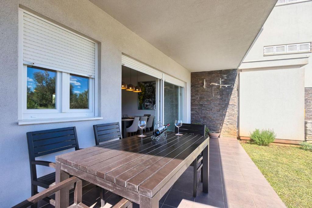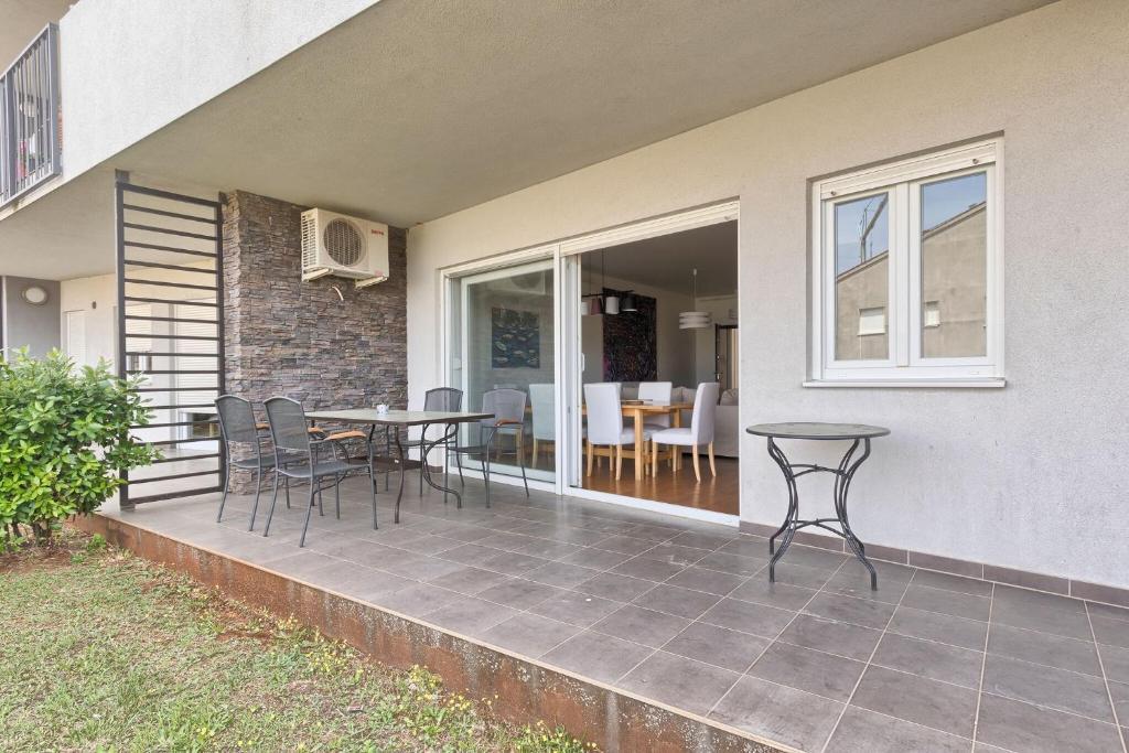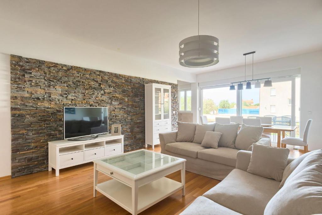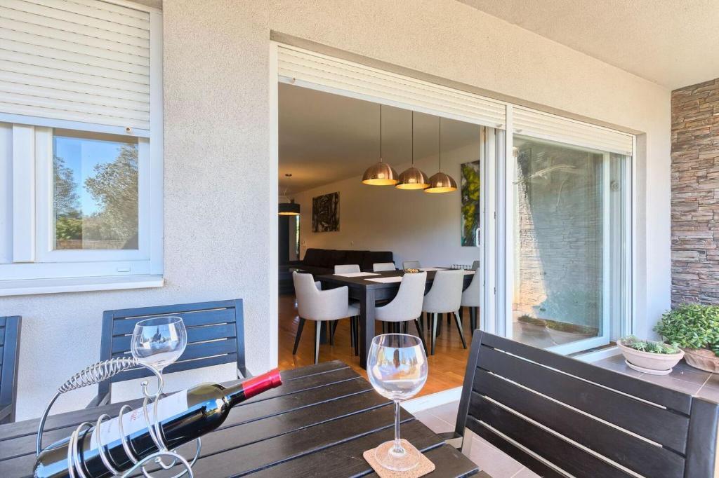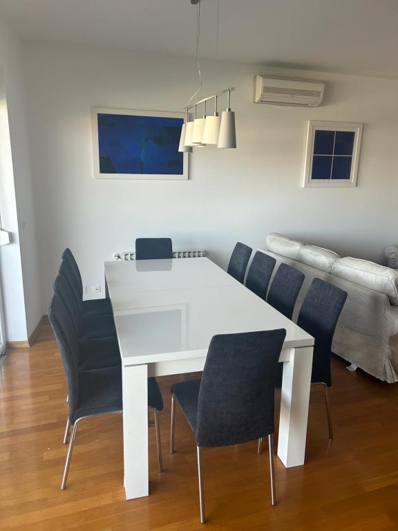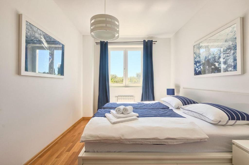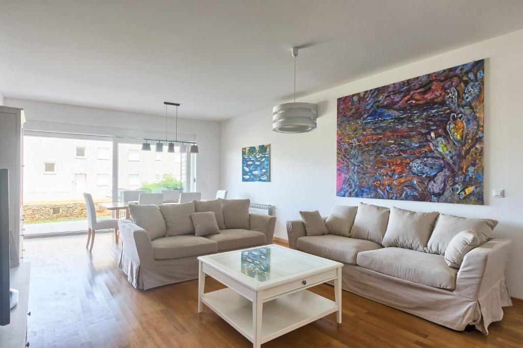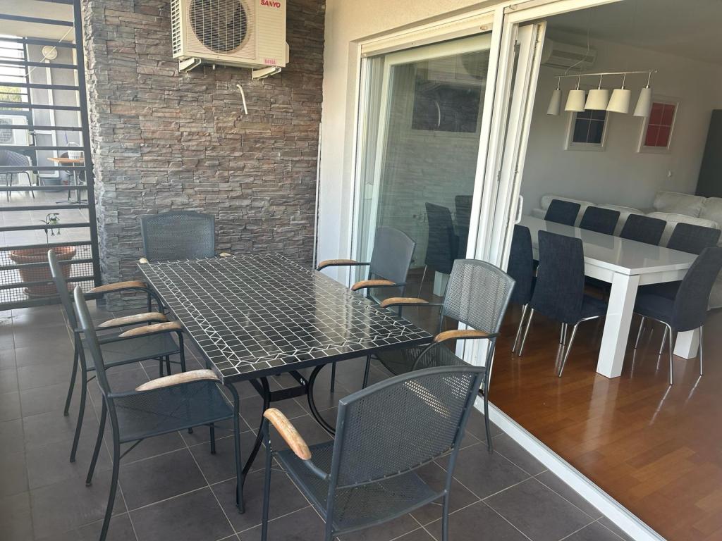 Turistička pristojba nije uključena u cijenu.Apartmani se sastoji od 3 prostrane spavaće sobe, 1 wca opremljenog perilicom rublja, 1 kupaonice sa wcom, opremljene kuhinje sa pećnicom i perilicom suđa, dnevnog boravka, terase sa pripadajućim vrtom, zajedničke ljetne kuhinje i parkirnog mjesta. Opremljeni su modernim namještajom, klima uređajem, WiFi i Smart TVom. Ručnici i posteljina uključeni su cijenu. Ukoliko Vam dosadi pripremanje jela u apartmanu, u zajedničkom vrtu možete ispeći roštilj ili peku u našoj ljetnoj kuhinji! :)