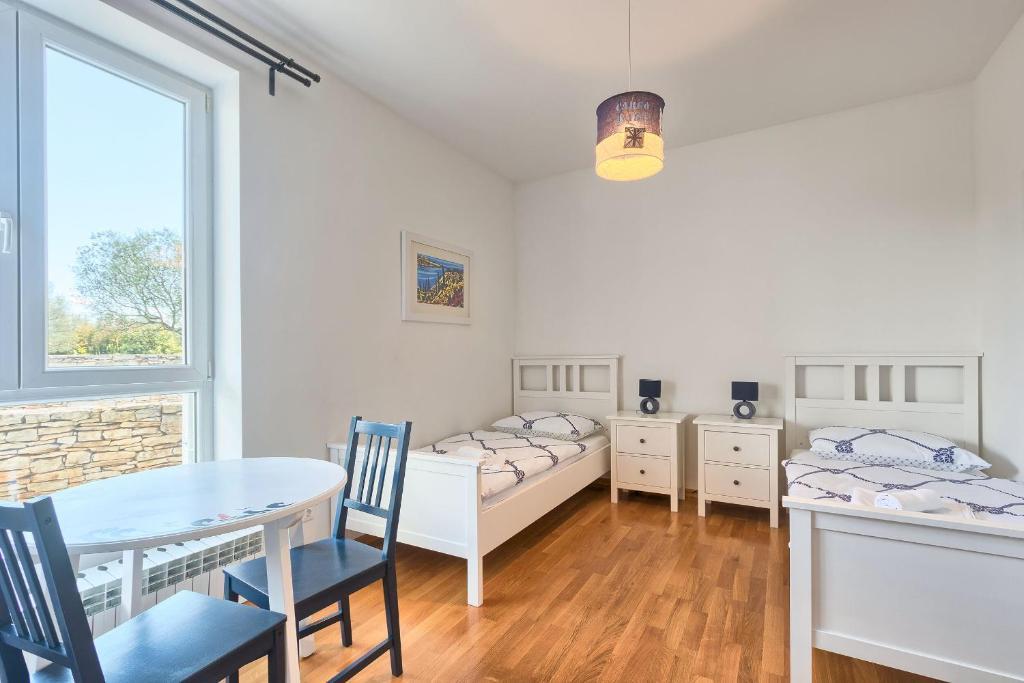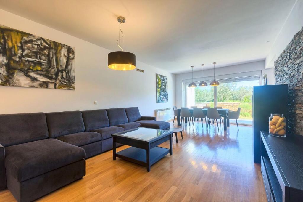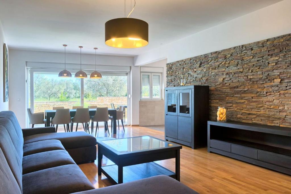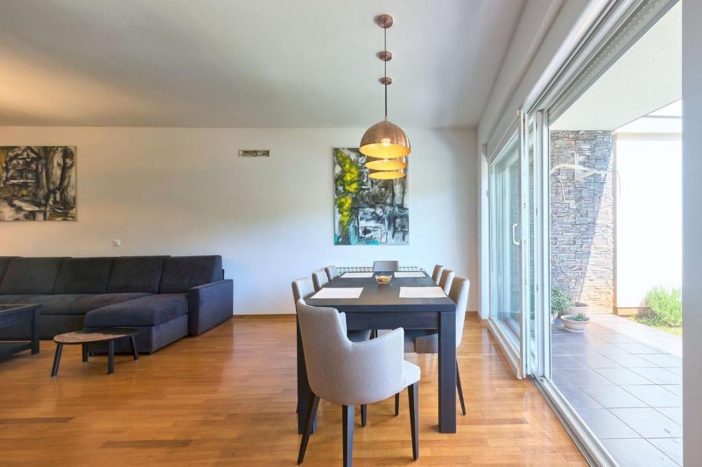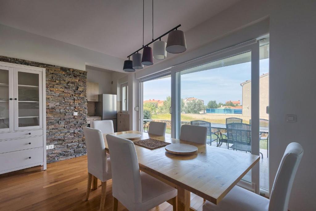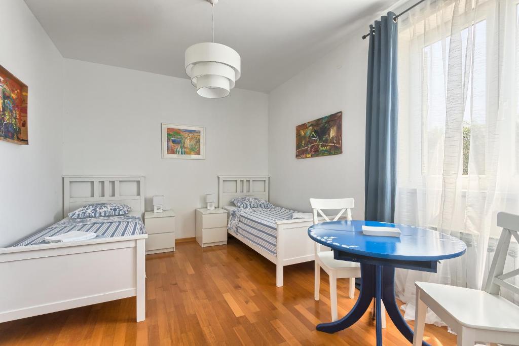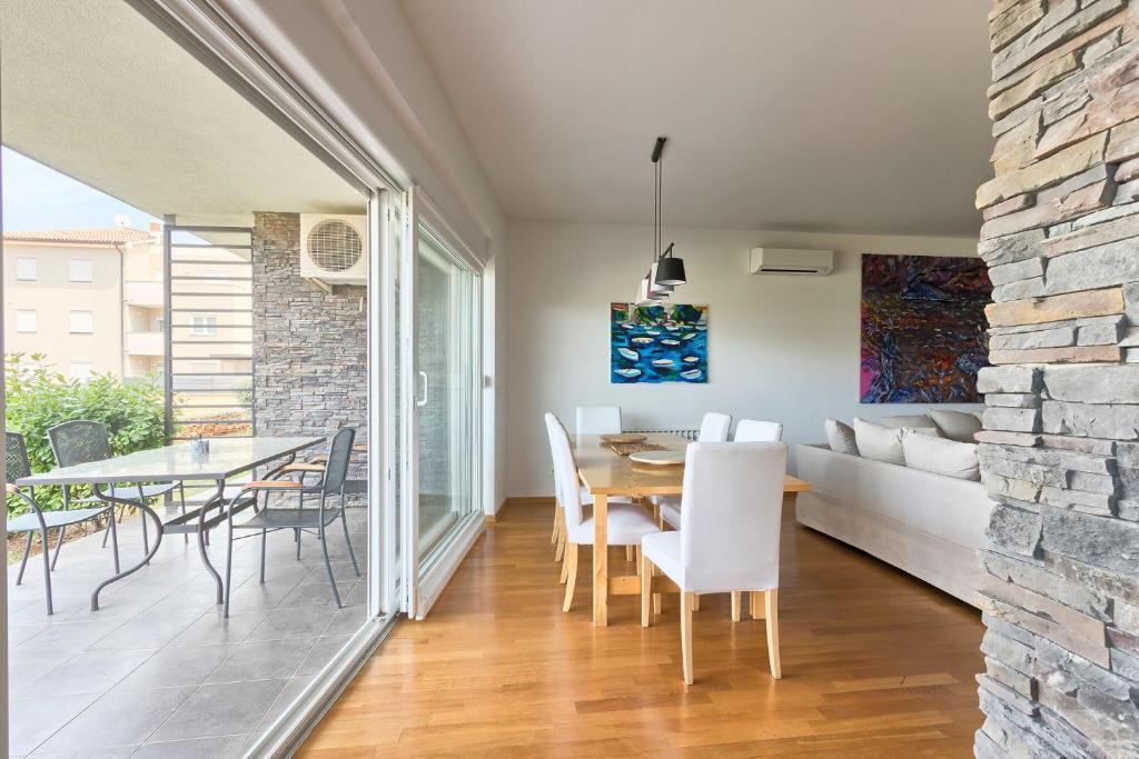Turistička pristojba nije uključena u cijenu.Apartmani se sastoji od 3 prostrane spavaće sobe, 1 wca opremljenog perilicom rublja, 1 kupaonice sa wcom, opremljene kuhinje sa pećnicom i perilicom suđa, dnevnog boravka, terase sa pripadajućim vrtom, zajedničke ljetne kuhinje i parkirnog mjesta. Opremljeni su modernim namještajom, klima uređajem, WiFi i Smart TVom. Ručnici i posteljina uključeni su cijenu. Ukoliko Vam dosadi pripremanje jela u apartmanu, u zajedničkom vrtu možete ispeći roštilj ili peku u našoj ljetnoj kuhinji! :)