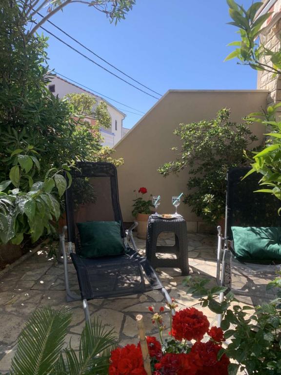 Apartman u centru mjesta, 100 metara od mora, vrhunska lokacija. Objekt je novogradnja, vrhunski uređen i opremljen. Apartman se nalazi u samom centru mjesta sa osiguranim velikim vlastitim parkingom. Na terasi apartmana nalazi se roštilj i vanjski tuš.