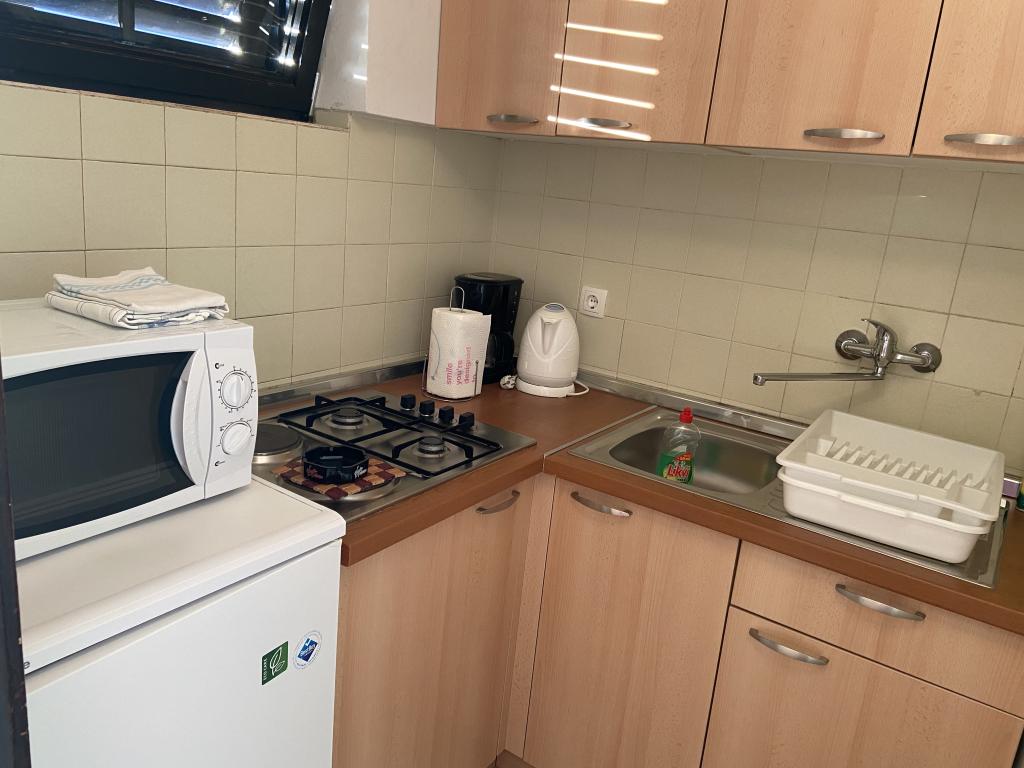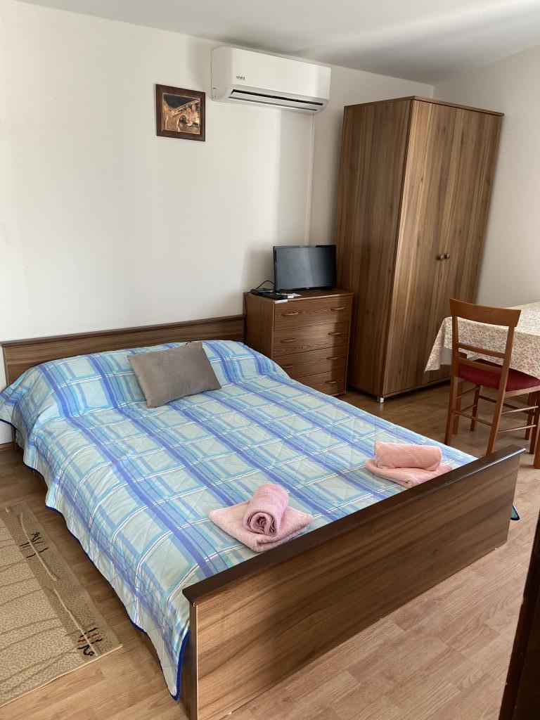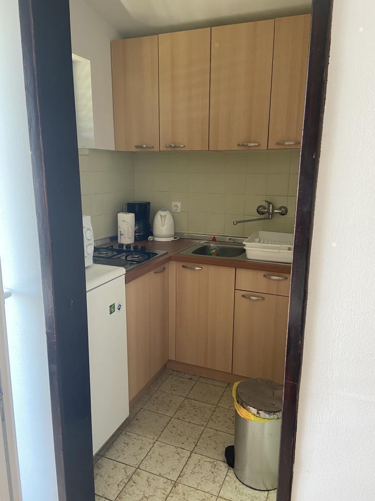 Kompletno opremljen apartman, udaljen svega 25 m od plaže, s prekrasnom terasom i pogledom na more. Centar, trgovine, restorani i ostali sadržaji su u neposrednoj blizini, na udaljenosti od samo par minuta hoda.