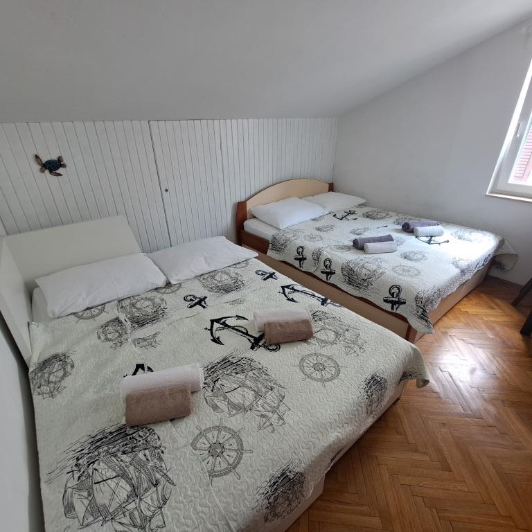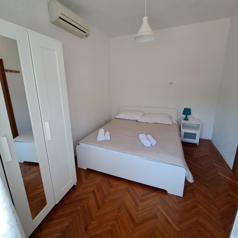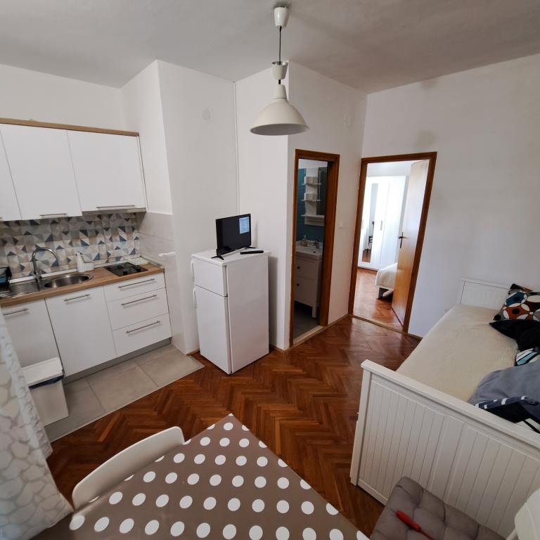 Predivan apartman (visoko potkrovlje), toplotno izoliran, prostran, uredan, perfektno čist i klimatiziran. Kuhinja opremljena odlično, kao da ste kući, s kompletnim posuđem i priborom. Udaljenost apartmana od mora je 1min hoda, idealno za djecu. Plaže, raj Božiji! Malo mjesto, puno hlada, bez gužve. Vlasnik apartmana je uvijek u diskretnom raspolaganju gostima, vrlo gostoljubiv. Osiguran parking za sva auta u prirodnoj hladovini. Noći bez galame, prometa i buke! Ne postoji nikakva zamjerka osim što nismo rezervirali više noćenja. Iskrene preporuke za ove apartmane i plaže! Vraćamo se opet!