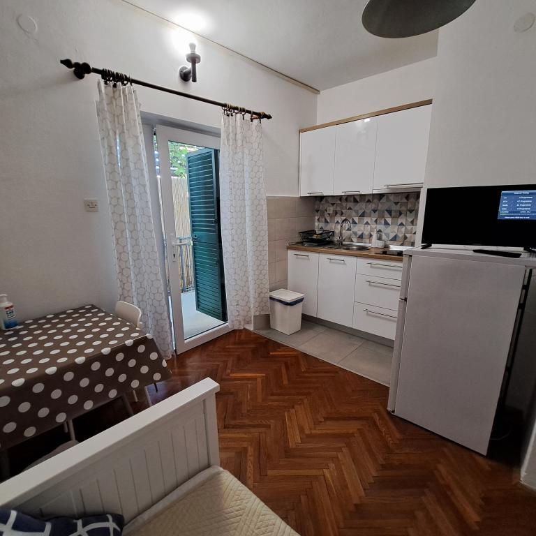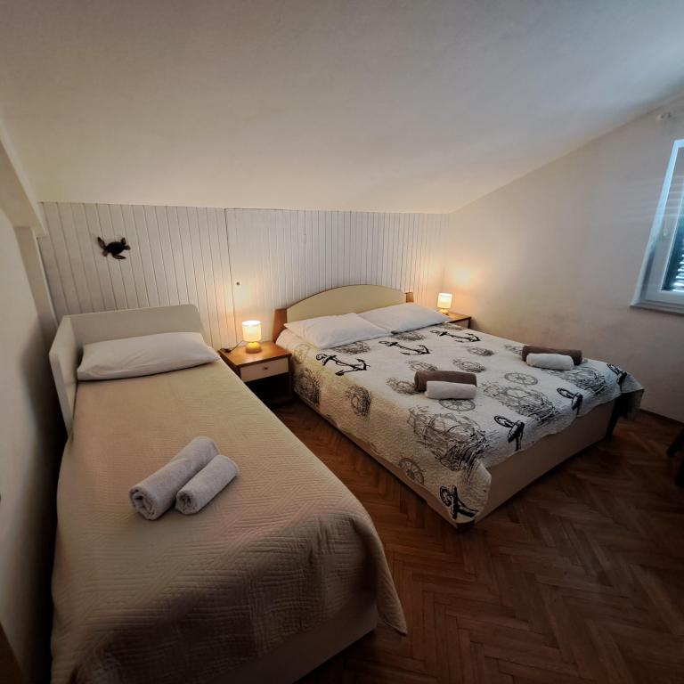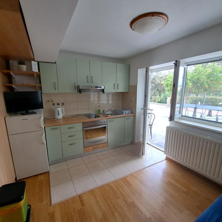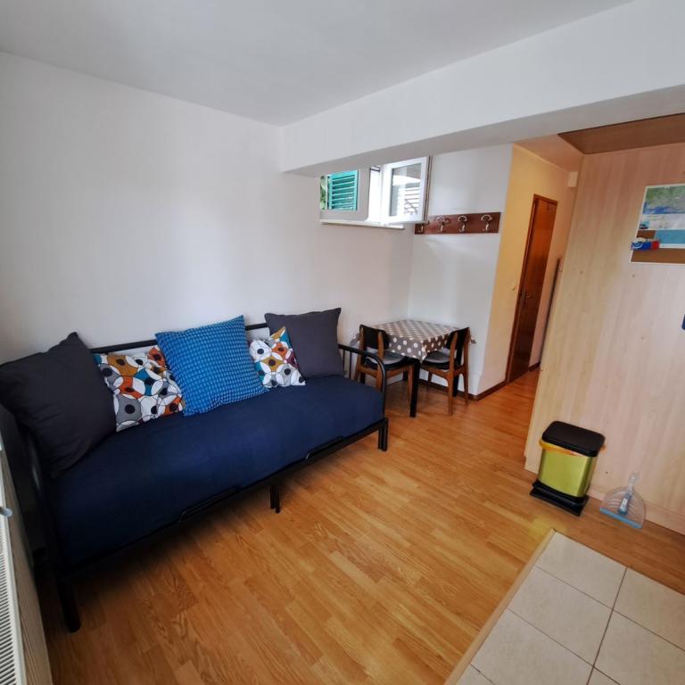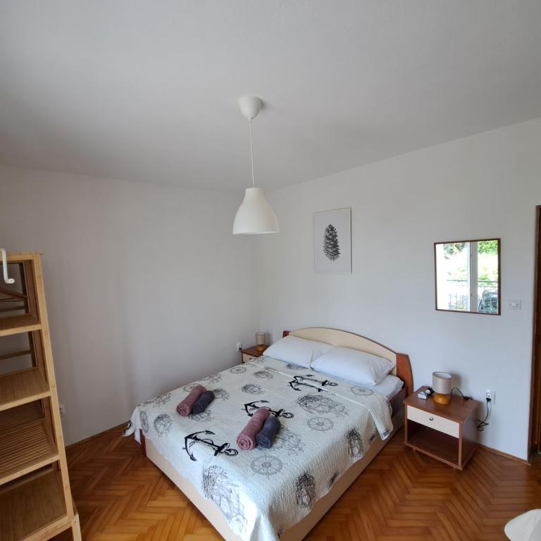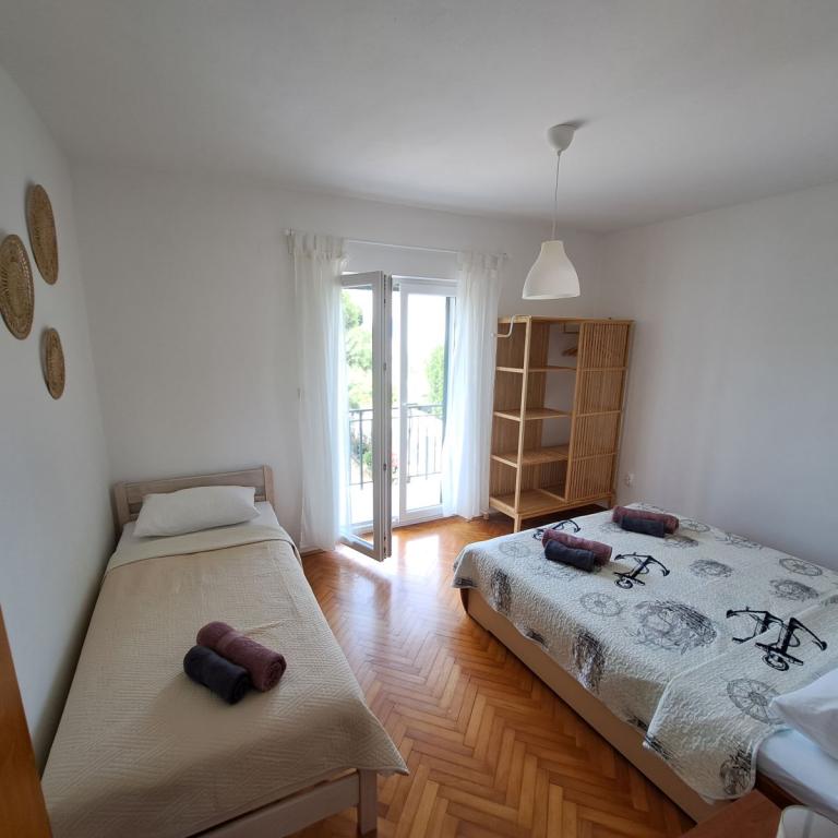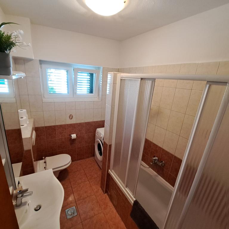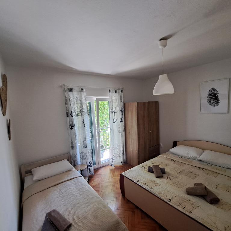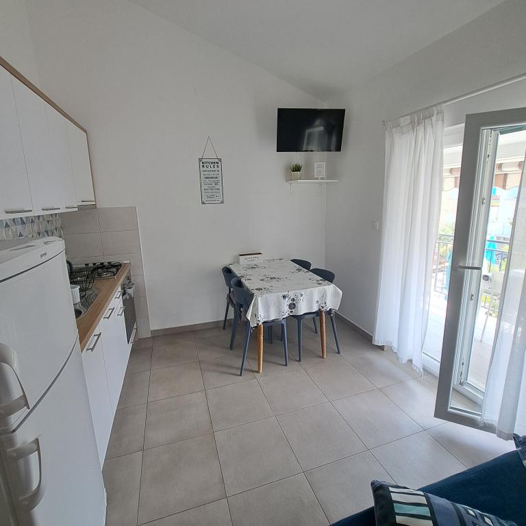 Apartmani se nalazi na prelijepoj lokaciji. Prelijep pogled na more. Plaža samo nekoliko metara udaljena. Auto nije potreban. Parkiralište se nalazi pored kuće u prelijepom hladu kiwija. Apartman je uvijek hladan I to bez Klima uređaja (Super). Apartman je čist i ima predivnu veliku terasu s pogledom na more. Vlasnik je veoma prijatan, spreman pomoći i pun razumijevanja. Hvala puno na prelijepom odmoru I do sada najboljem smještaju. Doći ćemo sigurno ponovo