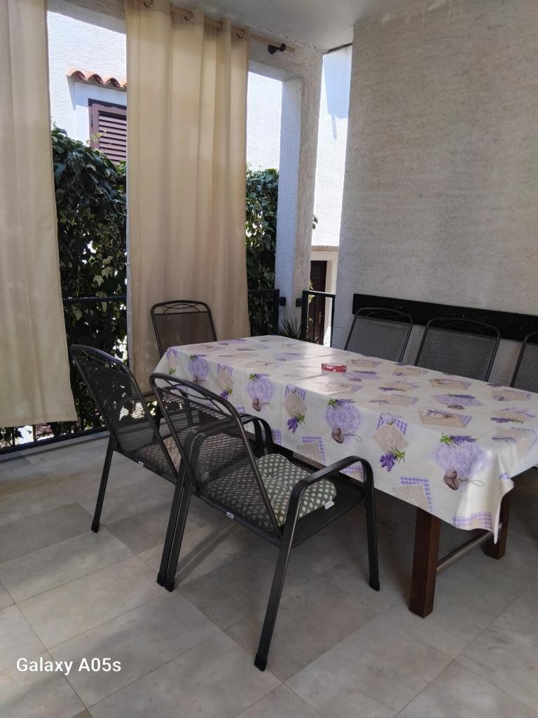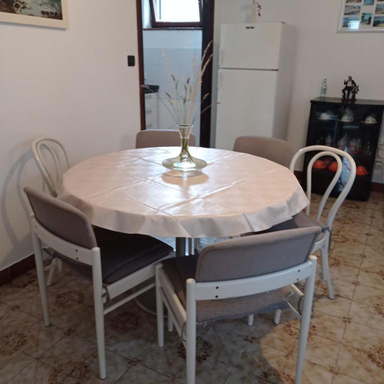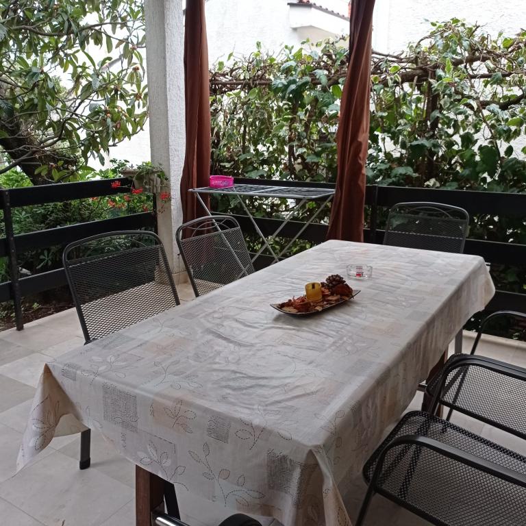 Smješten u borovoj šumici na par koraka od plaže i u blizini pješčane plaže i sela, ovaj klimatizirani apartman s tri spavaće sobe, dnevnom sobom, kupaonicom, dodatnim WCom i potpuno opremljenom kuhinjom kao i prema jugu orijentiranom terasom, nudi dovoljno mjesta za pet osoba. Vaš auto, parkiran u vrtu, vam je uvijek na dohvat ruke kao i gril za večeru na terasi.