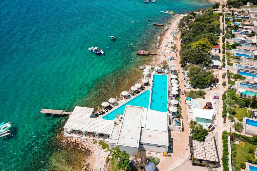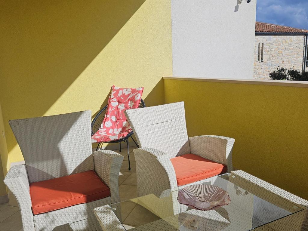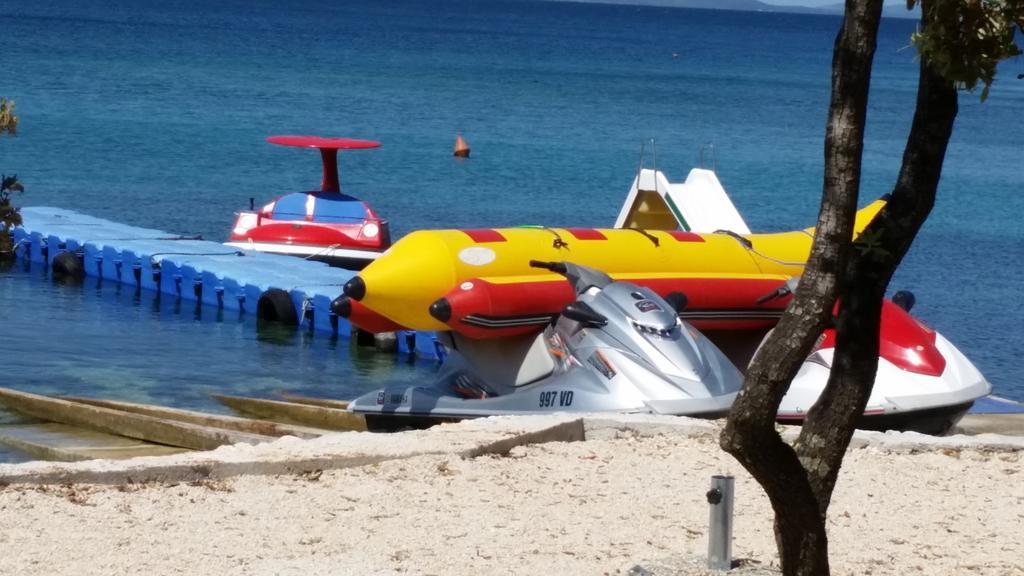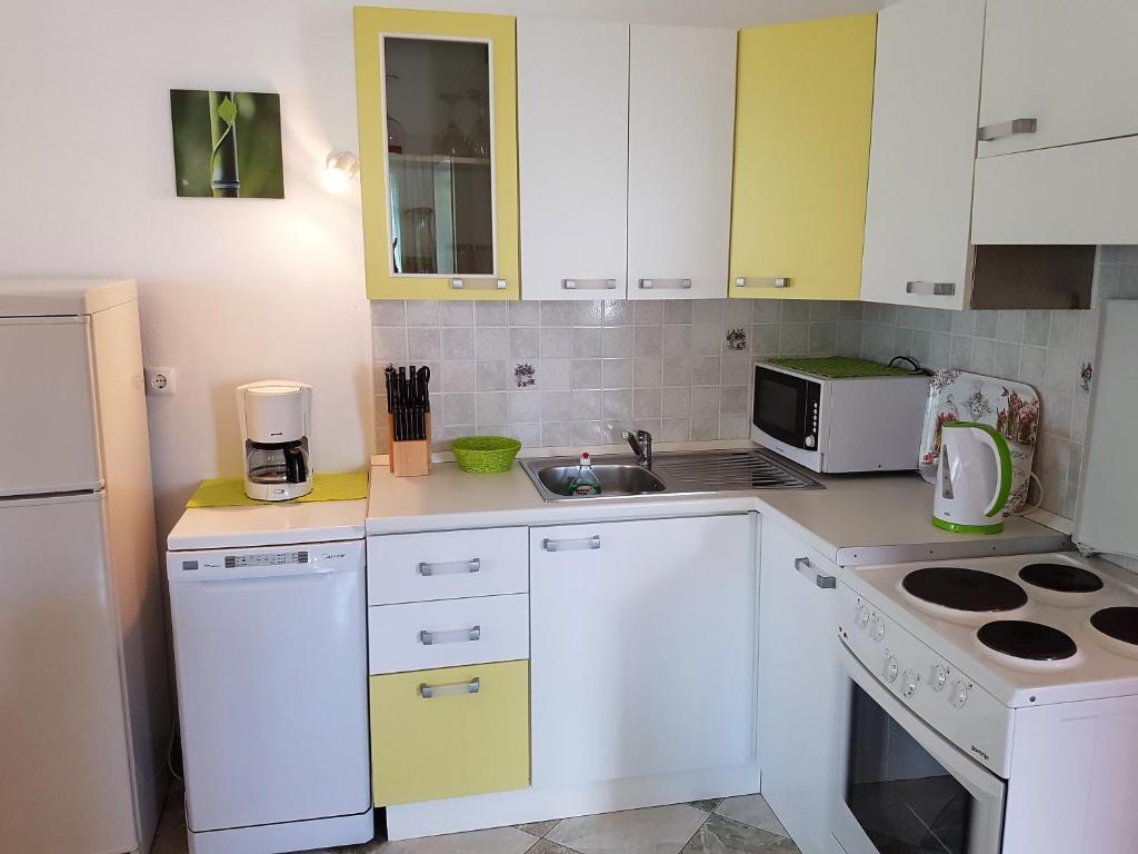 Turistička pristojba je uključena u cijenu.Kuhinja je opremljena sa posudama za pripremanje i serviranje hrane i pića, priborom za jelo, te kuhinjskim aparatima - hladnjak, zamrzivač, štednjak sa pećnicom, perilica suđa, toster, kaffe aparat, mikrovalna, kuhalo za vodu. Kuhinja je spojena sa dnevnim boravkom gdje je kauč na rasklapanje za jednu odraslu osobu ili dvoje. Kuhinja i dnevni boravak su klimatizirani. Apartmani imaju dvije odvojene spavaće sobe gdje je bračni krevet za dvije osobe (ukupno 4 odrasle osobe). Sobe su klimatizirane. Kupaonice su moderno uređene, sa tuš kabinom, sušilom za kosu, Svaki apartman ima vlastitu terasu. Pristup osobnim vozilom do objekta je odličan – za svaki apartman osigurano 1 parkirno mjesto. Za one koji vole trčanje, hodanje, vožnju biciklom i slično, tu je oko 5 km u dužinu vrlo lijepo šetalište koje svijetli u večernjim satima. Udaljenost od plaže je 50 m, od bazena za odrasle i djecu 100 m, od restorana i supermarketa 40 m. U blizini je veliko polje s vinogradima, gdje je mali restoran-konoba gdje možete dobro jesti i piti domaće vino.