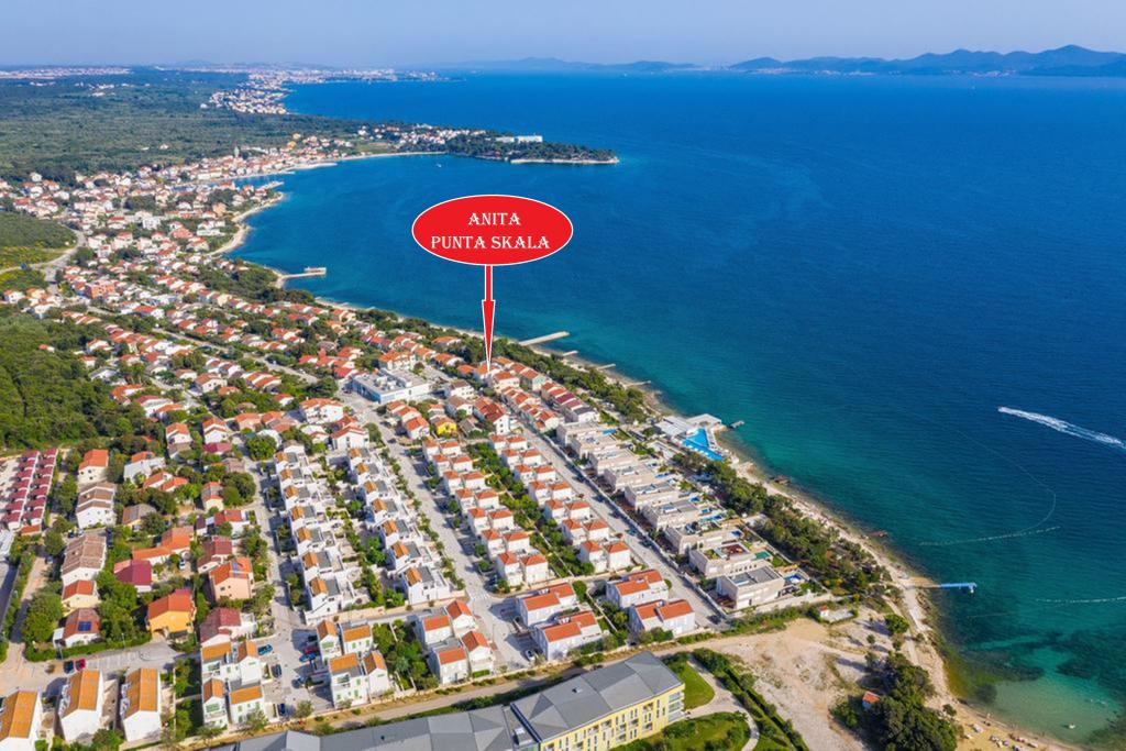 Privatni smještaj Anita nudi 4 apartmana uređena s puno ljubavi, pazeći na detalje koji bi našim gostima omogućili da se osjećaju što ugodnije. Apartmani su smješteni u samom centru Turističkog naselja Punta Skala, 2 minute hoda do prve plaže. Turističko naselje Punta Skala se nalazi pored Petrcana, malog ribarskog mjesto duge turističke tradicije s izuzetno čistim morem, prekrasnim prirodnim plažama i dosta zelenila. idealno za ugodan obiteljski odmor. Plaža je na jednom dijelu šljunkovita, na drugom s kamenim pločama, a u maloj uvali pjeskovita – vrlo pogodna za djecu. Nekad jedno od najljepših nudističkih odmarališta na Jadranu i sada, među prekrasnim prirodnim stijenama daje mogućnost gostu da nađe svoju skrivenu uvalu za ugodno sunčanje i kupanje. Na svega par koraka od apartmana nalazi se restoran koji nudi doručak i večeru. U tom istom objektu nalazi se vrlo dobro opremljen supermarket, igraonica za djecu, sauna i fitness centar.