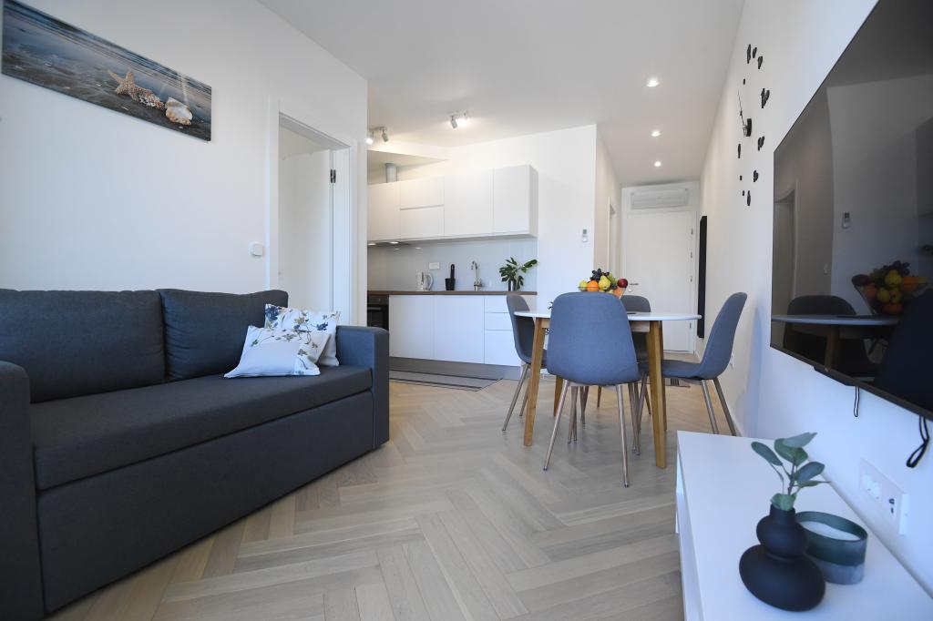 Apartmani obitelji Plazina nalaze se u mirnom dijelu Petrčana, udaljeni su svega 200 metara od najbliže plaže. Ispred apartmana osiguran je parking za sva vozila gostiju. Trgovina, restorani ostali sadržaji udaljeni su tek nekoliko minuta hodanja. Plaže su pješčane, stjenovite i betonske sa puno hlada udaljene nekoliko minuta hodanja od apartmana što je idealno za obitelji sa djecom. U blizini apartmana nalaze se i kraljevski vinogradi koji u ostalom imaju i restoran kao i kušaonicu vinu. Gosti se također mogu poslužiti i vanjskim roštiljem, a domaćin je uvijek na usluzi u bilo koje vrijeme.