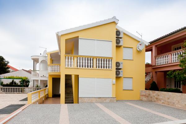 Potpuno opremljeni jednosobni apartmani u Petrčanima, predio Punta Skala. Osigurano mjesto za parking za svaki apartman, neposredna blizina trgovine i restorana. Objekt udaljen 200 m od plaže, 500 m od centra Petrcana.
