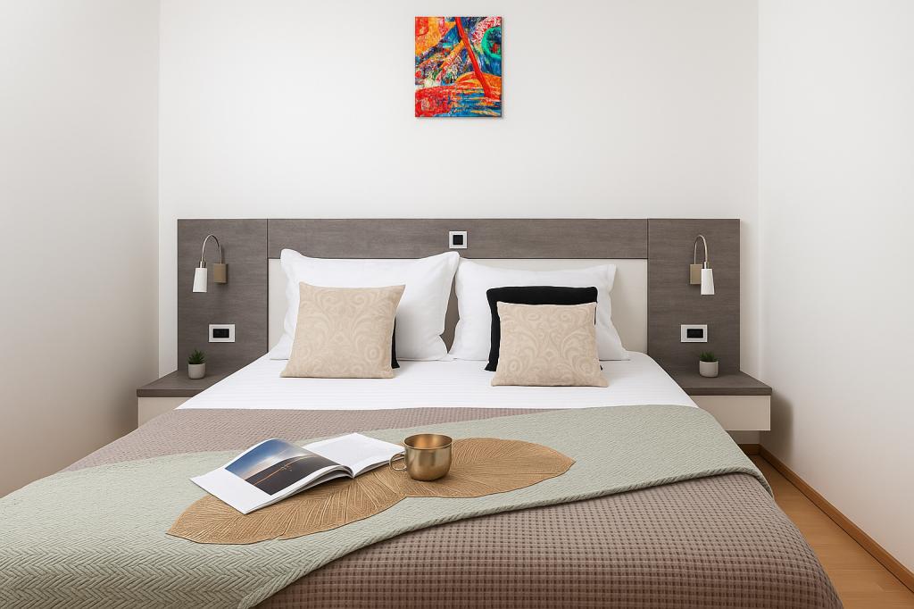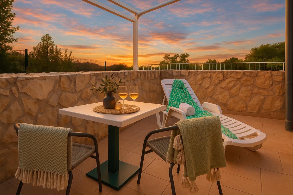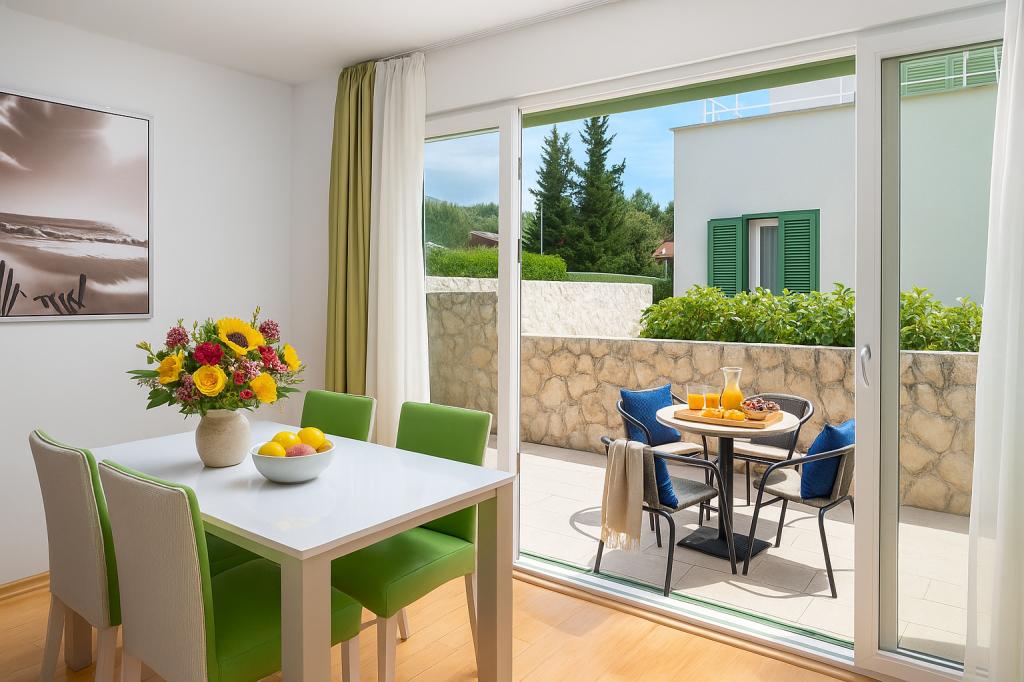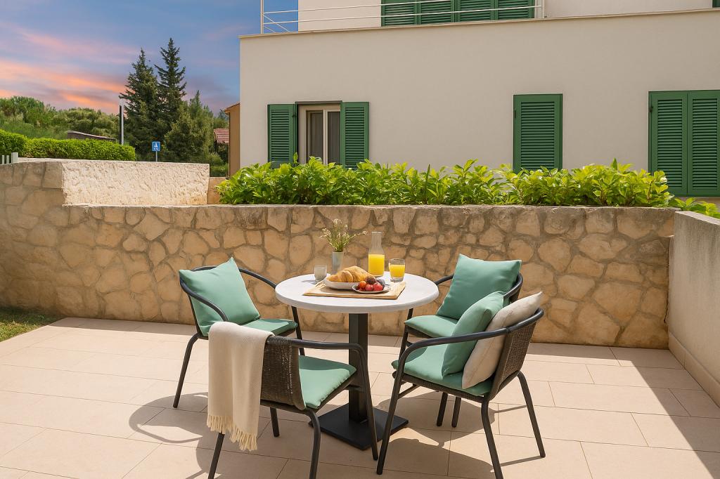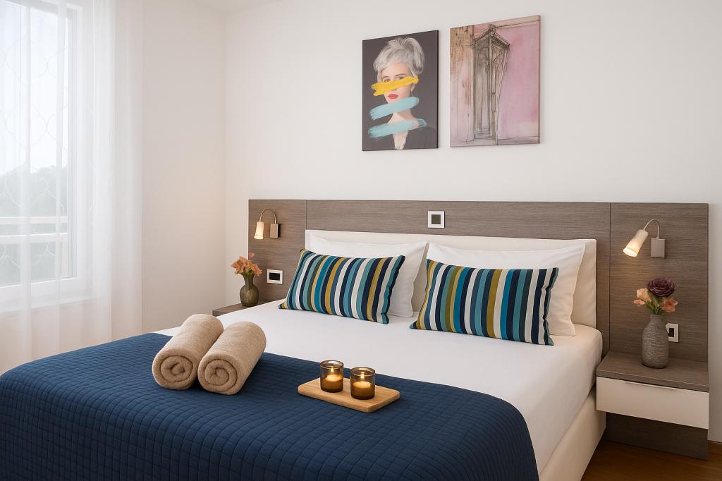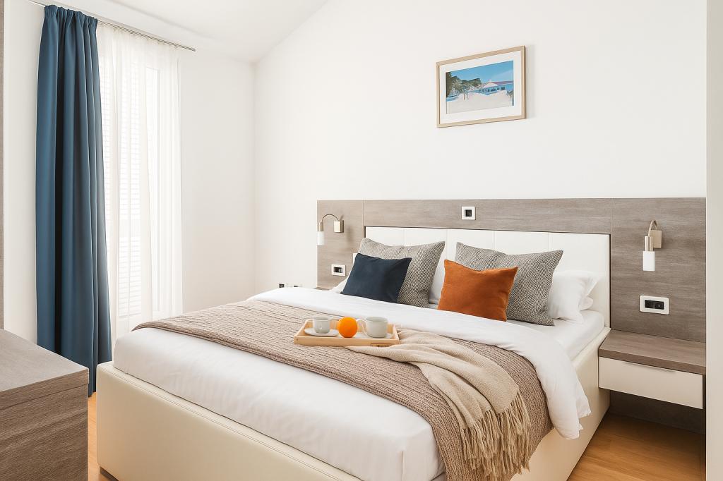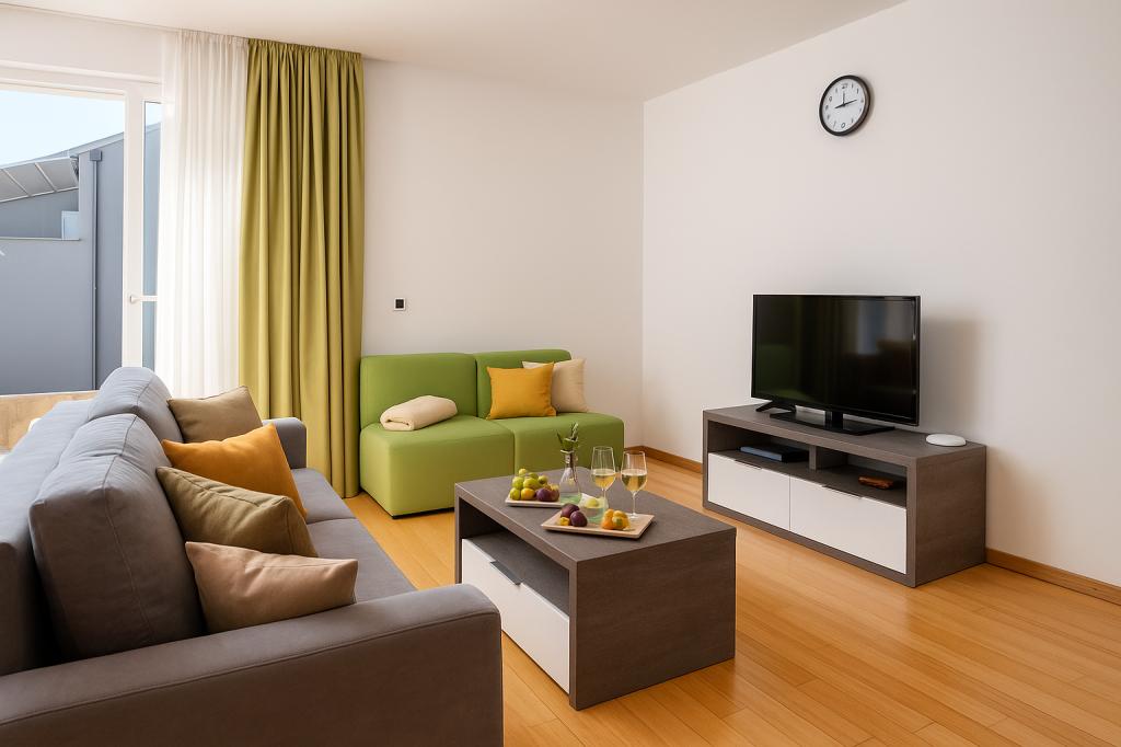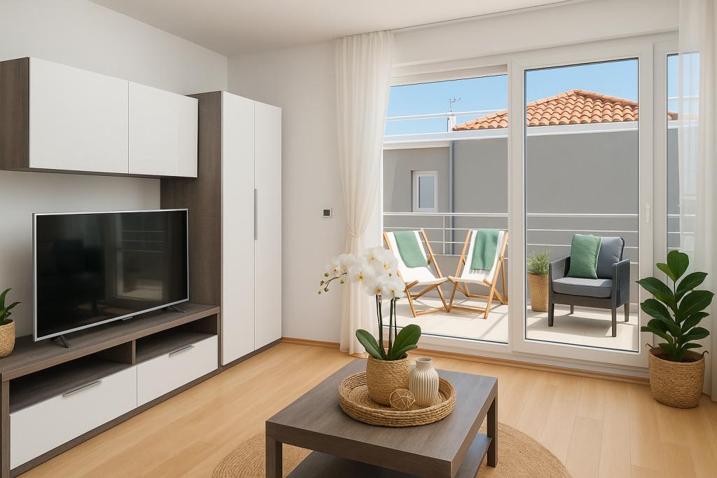 Apartmani Sunny Resort u Pretrčanima nudi savršen spoj udobnosti i vrhunske lokacije za opuštajući odmor. SmještenI u kompleksu Sunny Resorta, u neposrednoj blizini hotela Falkensteiner Diadora i Iadera. Opis apartmana - Kapacitet: do 4-6 osoba (1-2 spavaća soba s bračnim krevetom + kauč na razvlačenje u dnevnom boravku) - Površina: 49-75 m² - Pogled: balkon i terasa s pogledom na more - Opremljenost: klima uređaj, potpuno opremljena kuhinja, Wi-Fi, TV ravnog ekrana, Netflix