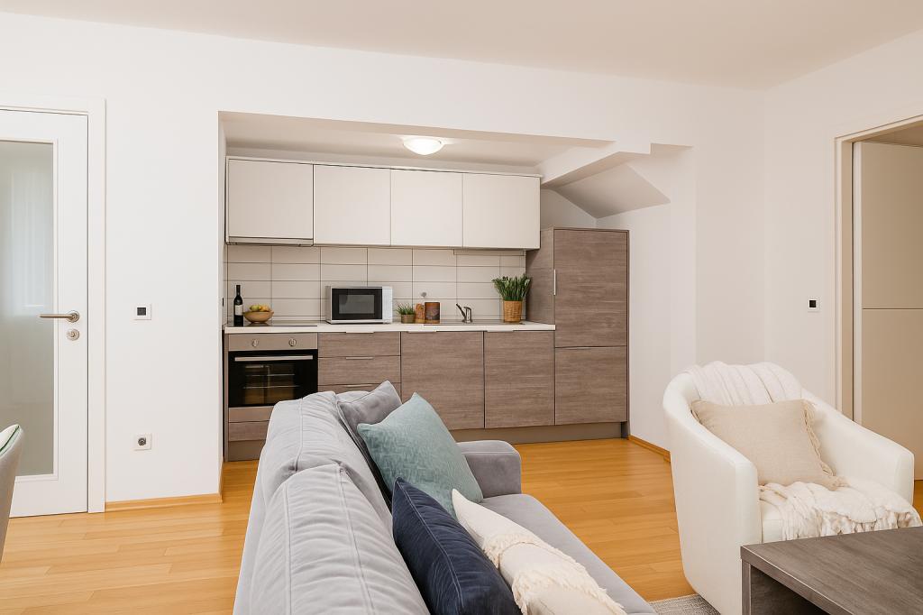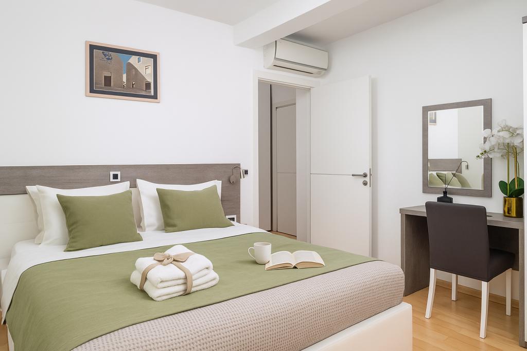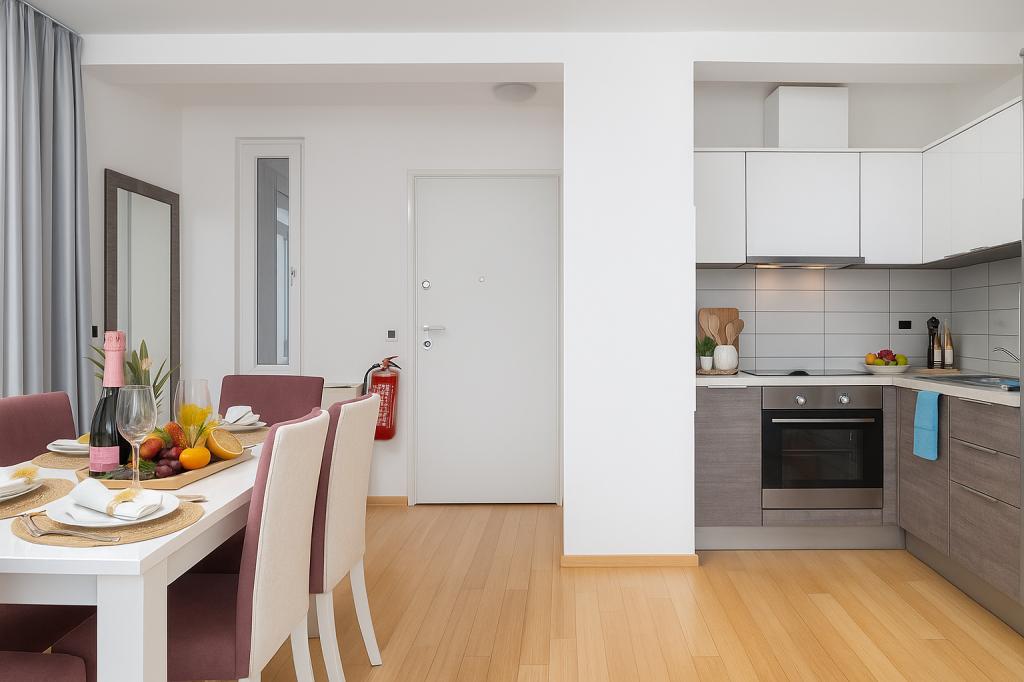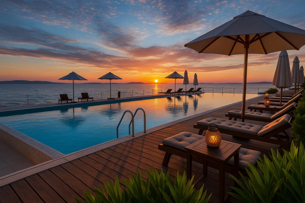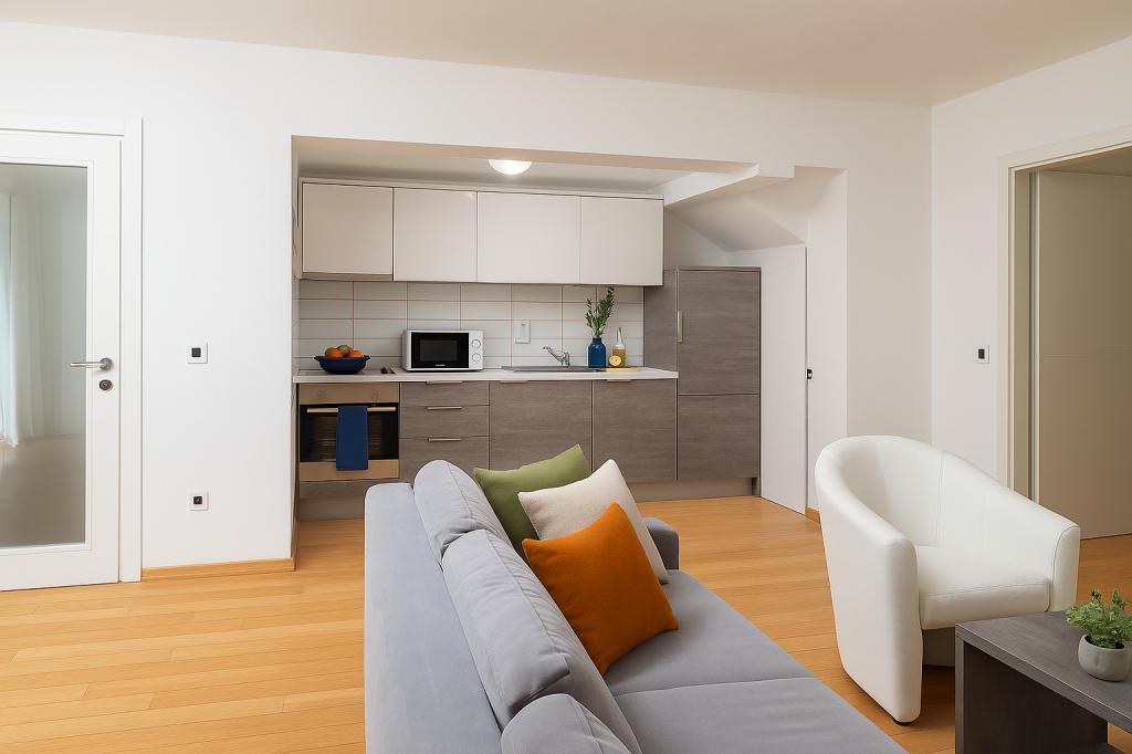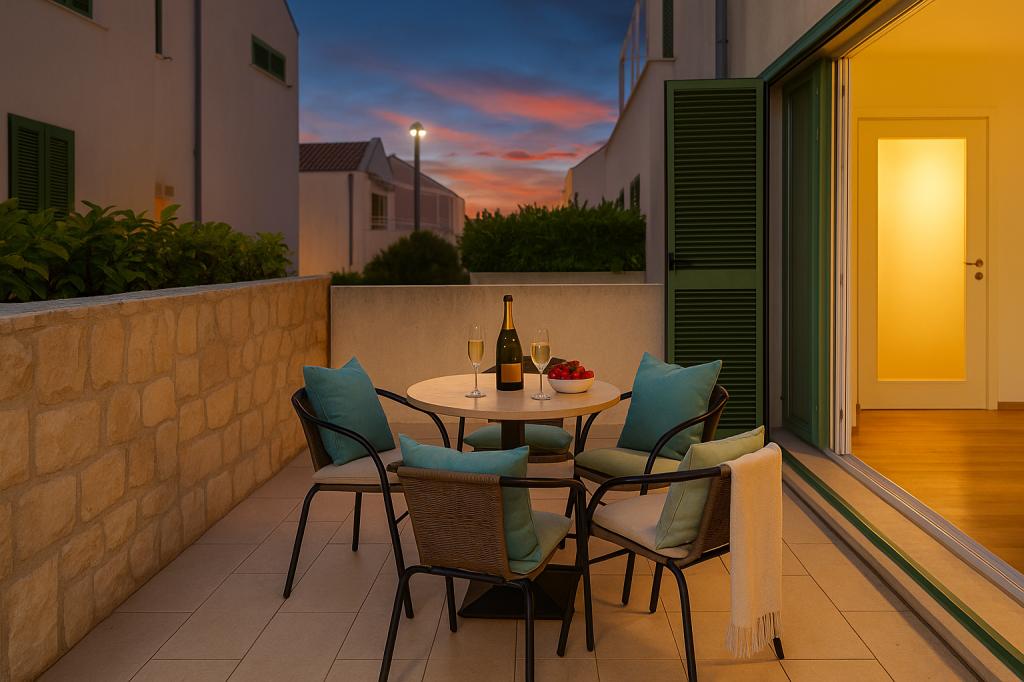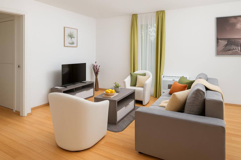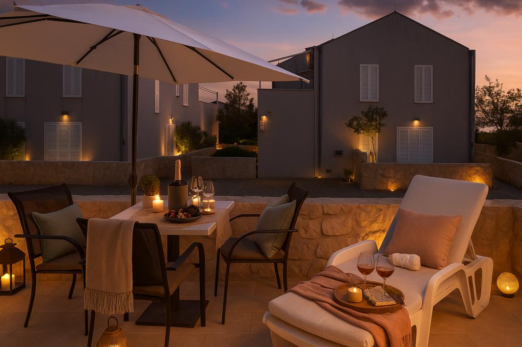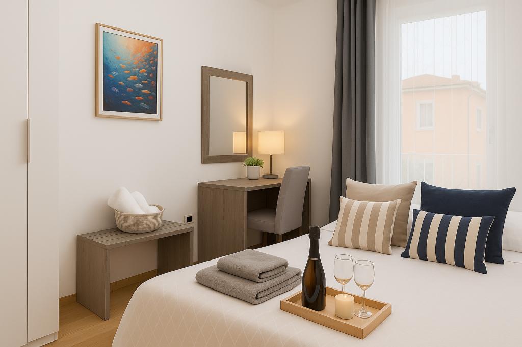 Apartmani Sunny Resort u Pretrčanima nudi savršen spoj udobnosti i vrhunske lokacije za opuštajući odmor. SmještenI u kompleksu Sunny Resorta, u neposrednoj blizini hotela Falkensteiner Diadora i Iadera. Opis apartmana - Kapacitet: do 4-6 osoba (1-2 spavaća soba s bračnim krevetom + kauč na razvlačenje u dnevnom boravku) - Površina: 49-75 m² - Pogled: balkon i terasa s pogledom na more - Opremljenost: klima uređaj, potpuno opremljena kuhinja, Wi-Fi, TV ravnog ekrana, Netflix