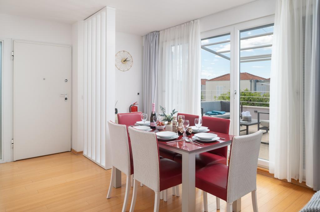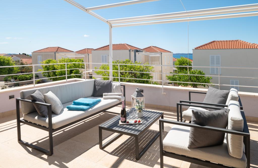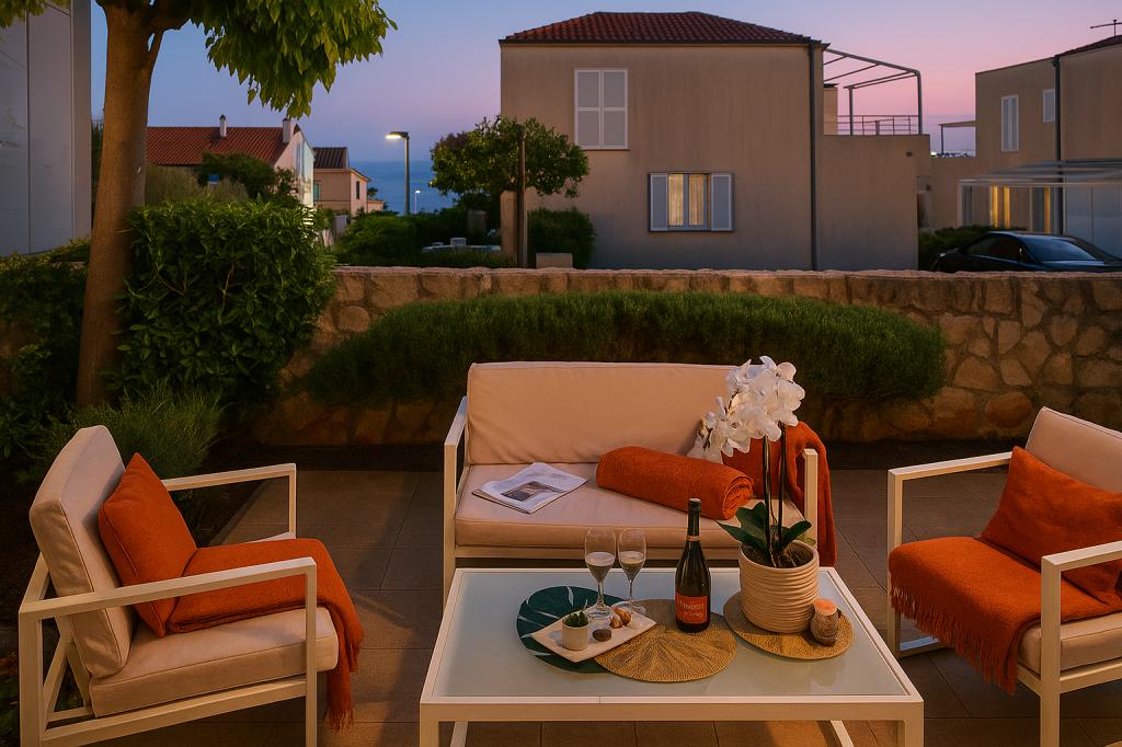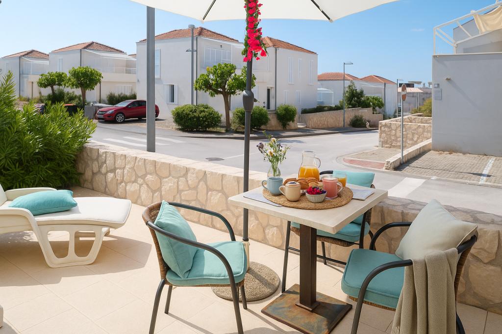Sadržaji kompleksa - Privatna plaža: ležaljke i suncobrani uključeni - Bazen: infinity bazen s pogledom na more + dječji bazen - Wellness: sauna i fitness centar dostupni gostima - Restoran: Zanzibar smješten ispod apartmana - Sigurnost: besplatan parking ispred zgrade, rampa i video nadzor - Mogućnost najma suncobrana - Mogućnost najma Jet-sky Lokacija - Udaljenost do plaže: 3 minute hoda - Udaljenost do centra Petrčana: 10 minuta hoda - Blizina atrakcija: hoteli Falkensteiner Diadora i Iadera, razni restorani i kafići