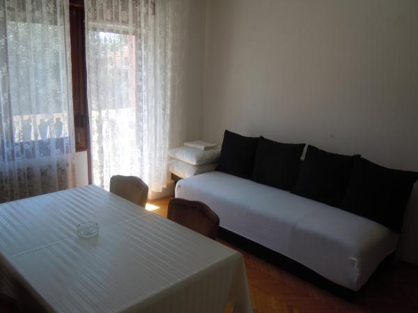 Na rubu mjesta, s pogledom na more te udaljeno 350 m od najbliže plaže i 200 m od centra, smještaj je u blizini svih sadržaja a istovremeno izoliran od turističke vreve. Apartmani su uvijek ugodno klimatizirani i bogato opremljeni za potrebe jedne obitelji i duže ljetovanje.