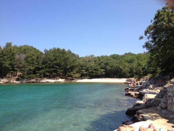 Kompletno opremljen apartman u prizemlju obiteljske kuće u mirnom selu Pinezići koje se nalazi na 15 minuta vožnje autom od gradova Krka i Malinske te 20 minuta od zračne luke. Apartman krasi veliko dvorište smješteno u prvom redu od mora na samo 300 metara zračne udaljenosti do plaže na kojoj se nalaze dva beach bara i aquapark za djecu. U selu se nalaze dvije trgovine na udaljenosti 100 metara od apartmana, a udaljenost do restorana je 1 kilometar. Apartman je idealan za obitelji s djecom koja žele svoj odmor provesti u miru daleko od gradske gužve